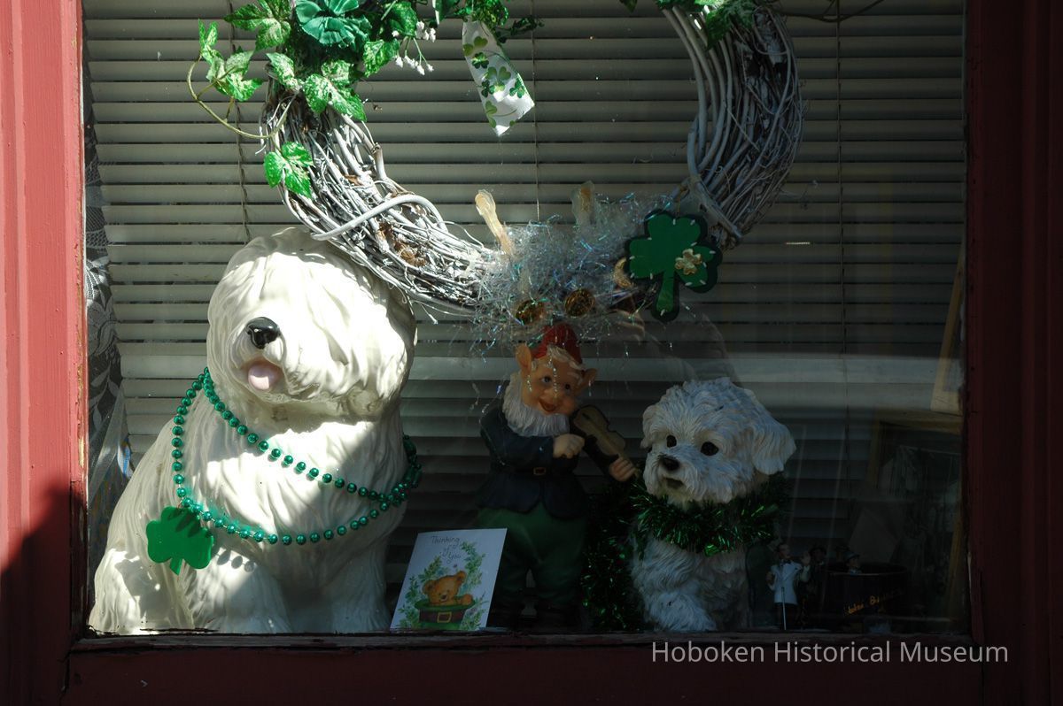 Color photographs, six, of St. Patrick's Day window displays at a Willow Terrace home, Hoboken, March 17-18, 2006.
