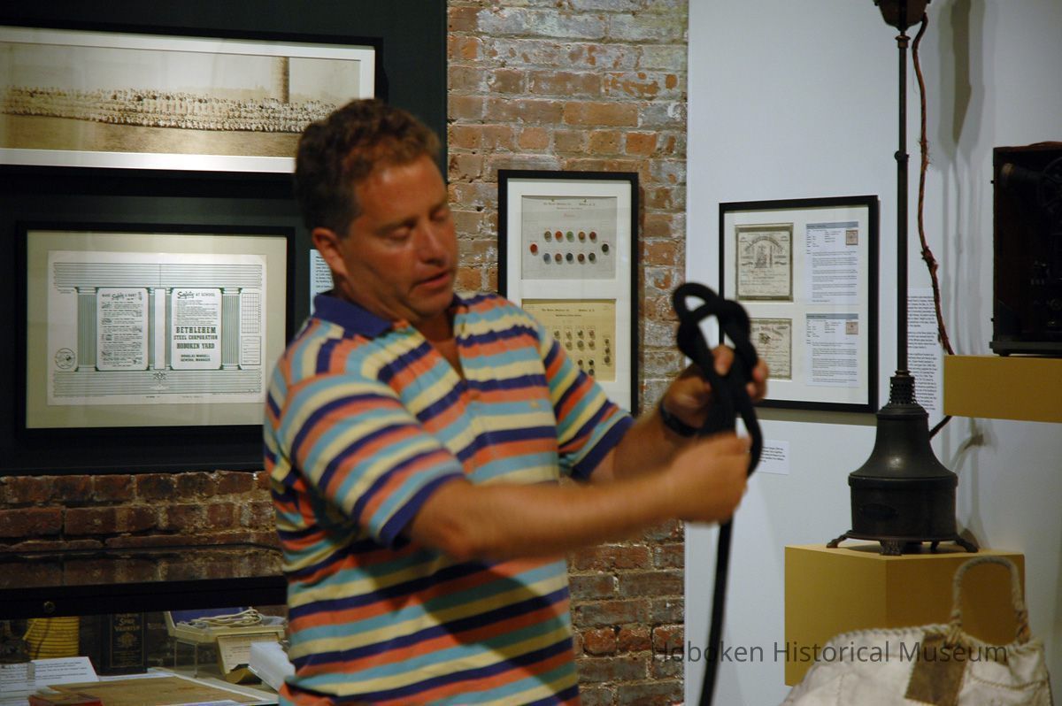 Color photos, 35, of Frank Hanavan demonstrating the art of knotting & workshop at HHM, Hoboken, August 6, 2006.