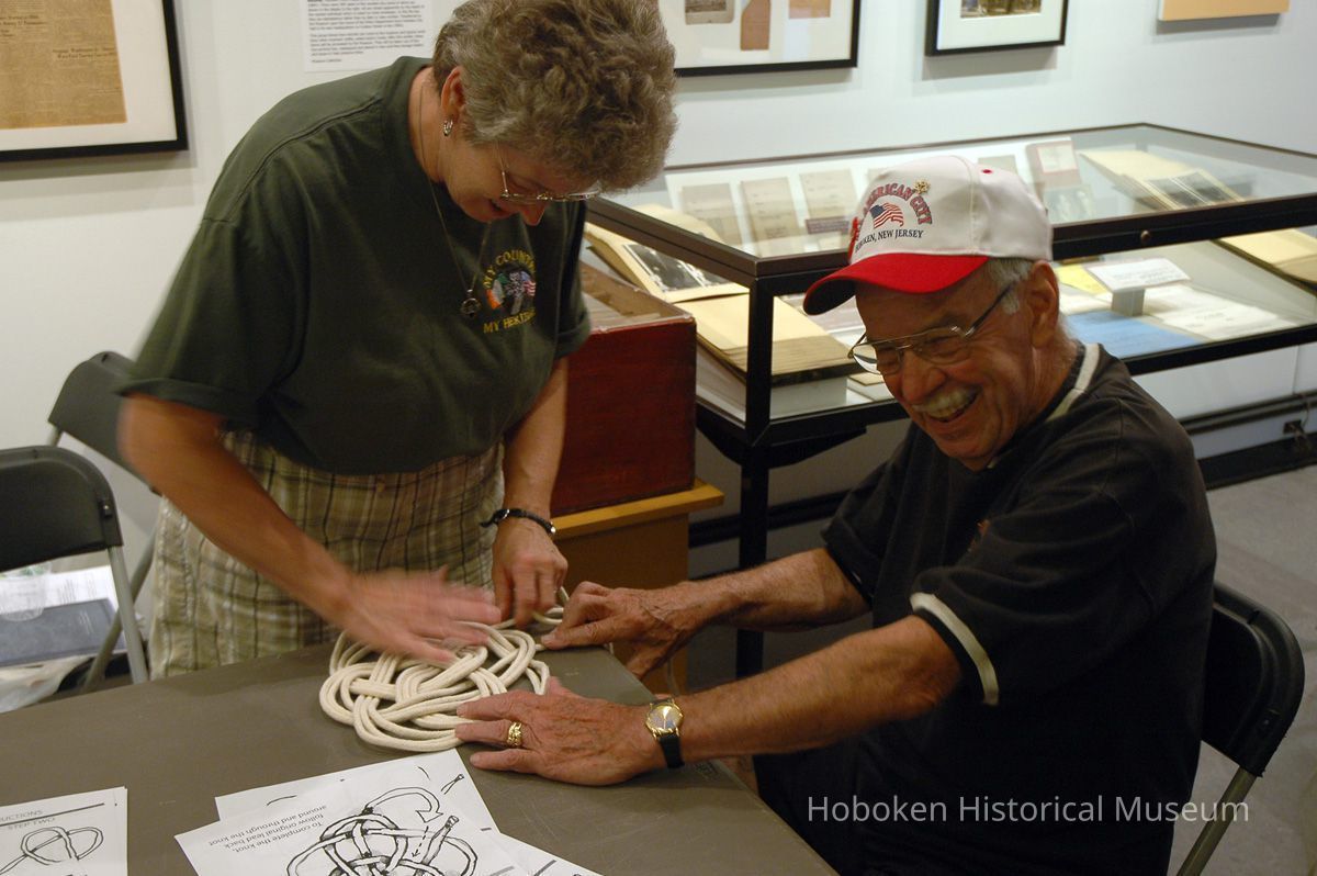 Color photographs, thirty-five, of Frank Hanavan demonstrating the art of knotting and workshop at Hoboken Historical Museum, Hoboken, August 6, 2006.