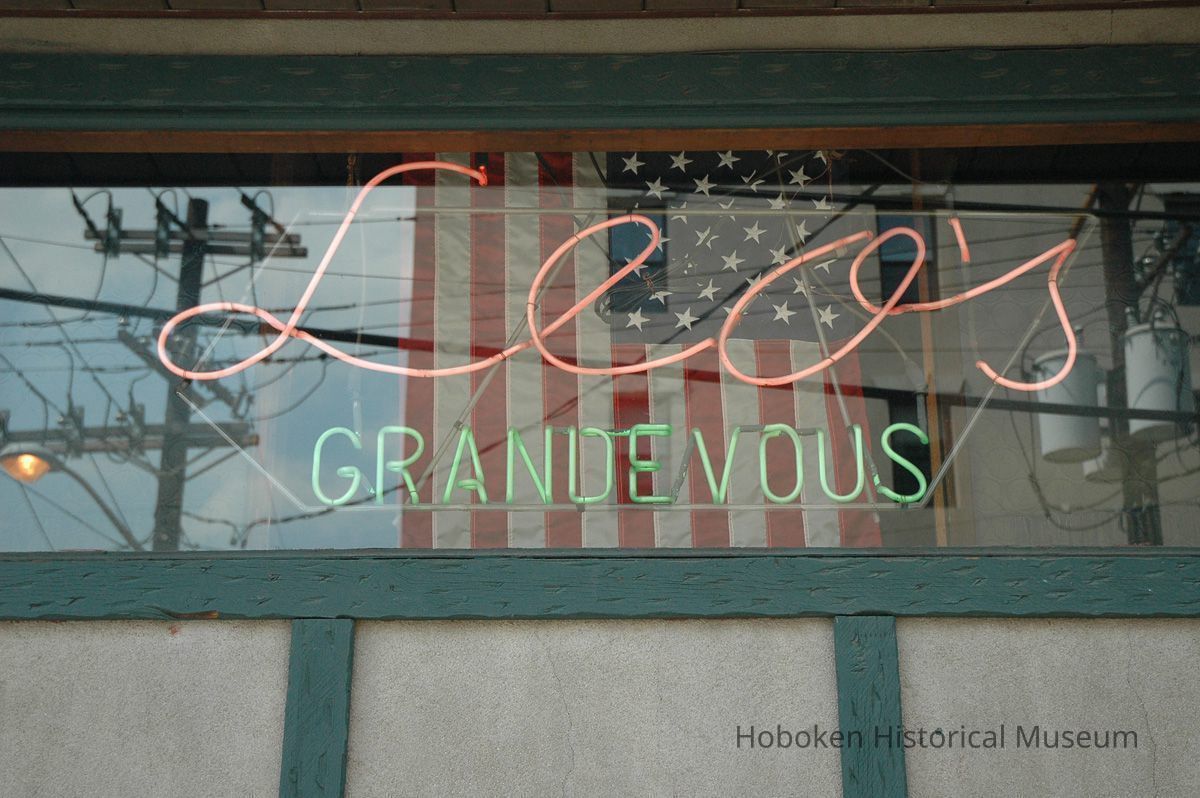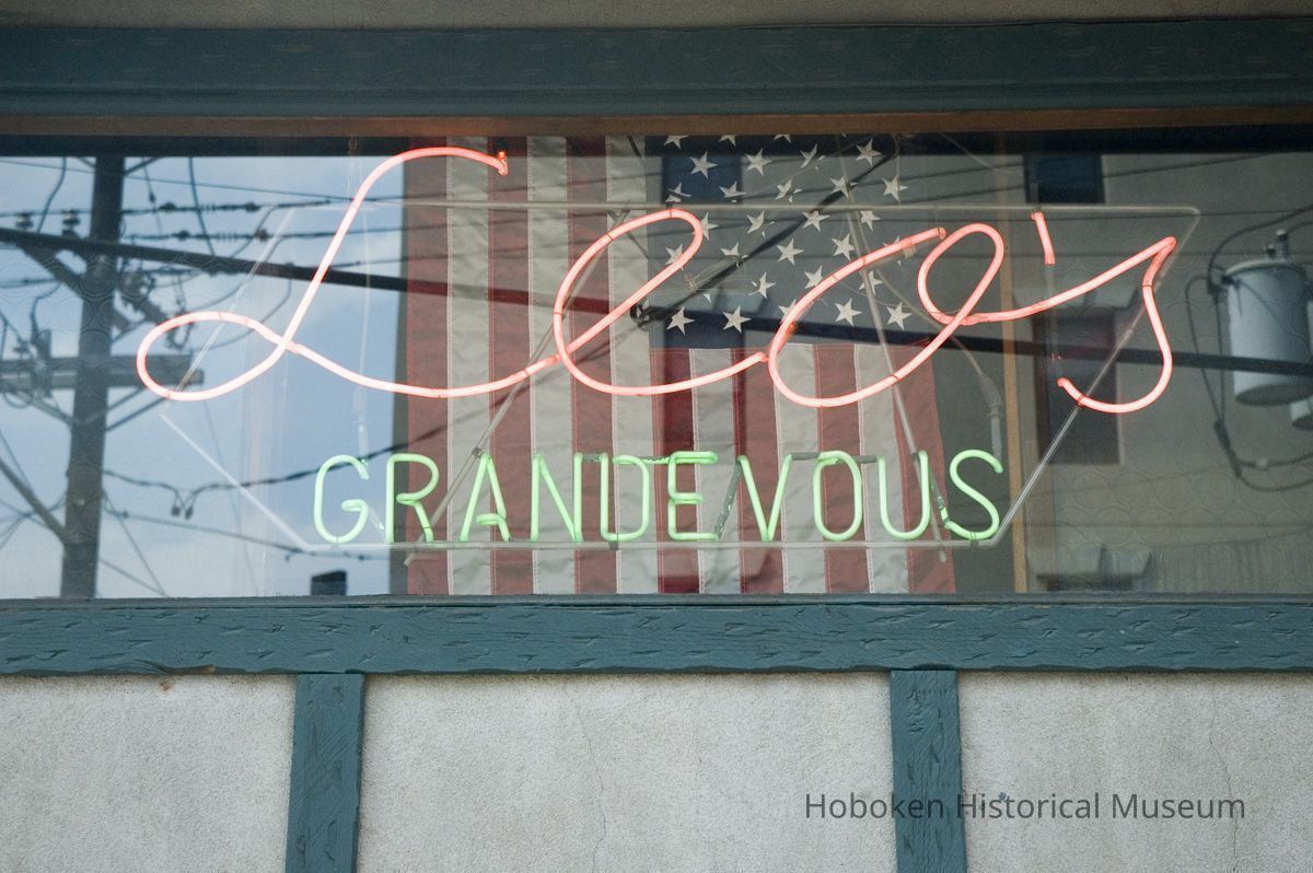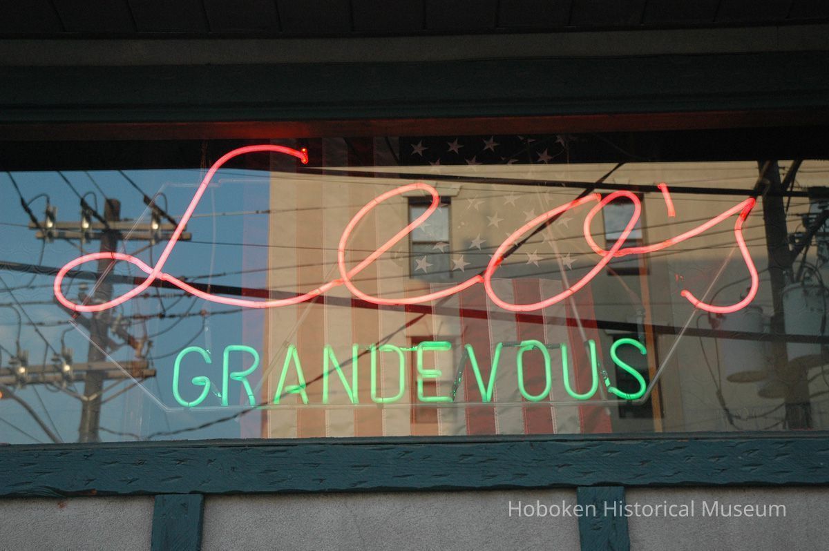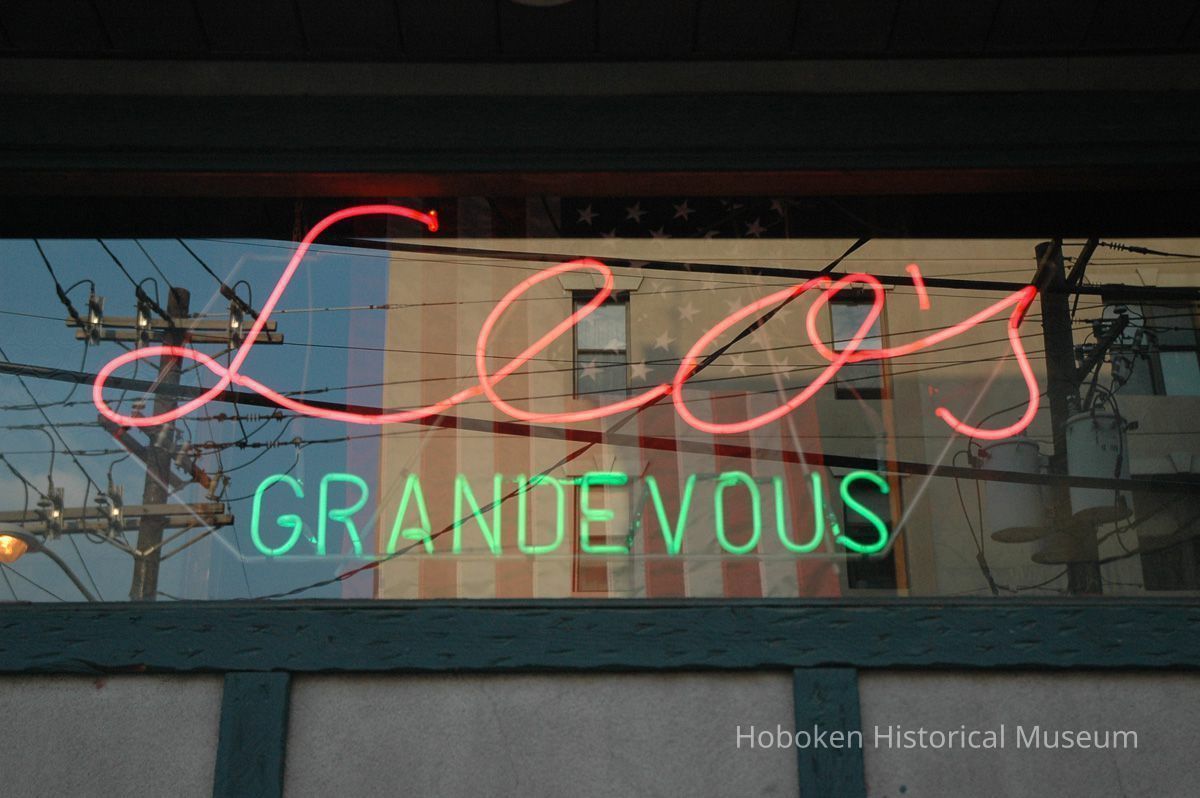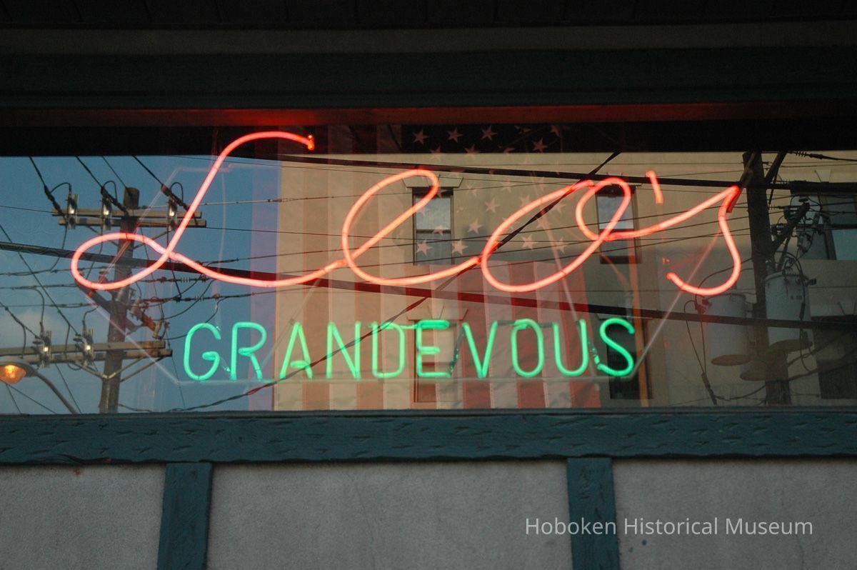 Color photos, 5, of neon window sign for Leo's Grandevous, 200 Grand St., Hoboken, August 14, 2006.