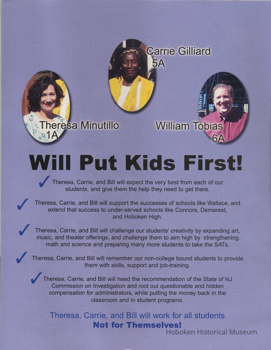 Campaign brochure: Kids First slate for Hoboken Board of Education election, Apr. 18, 2006.