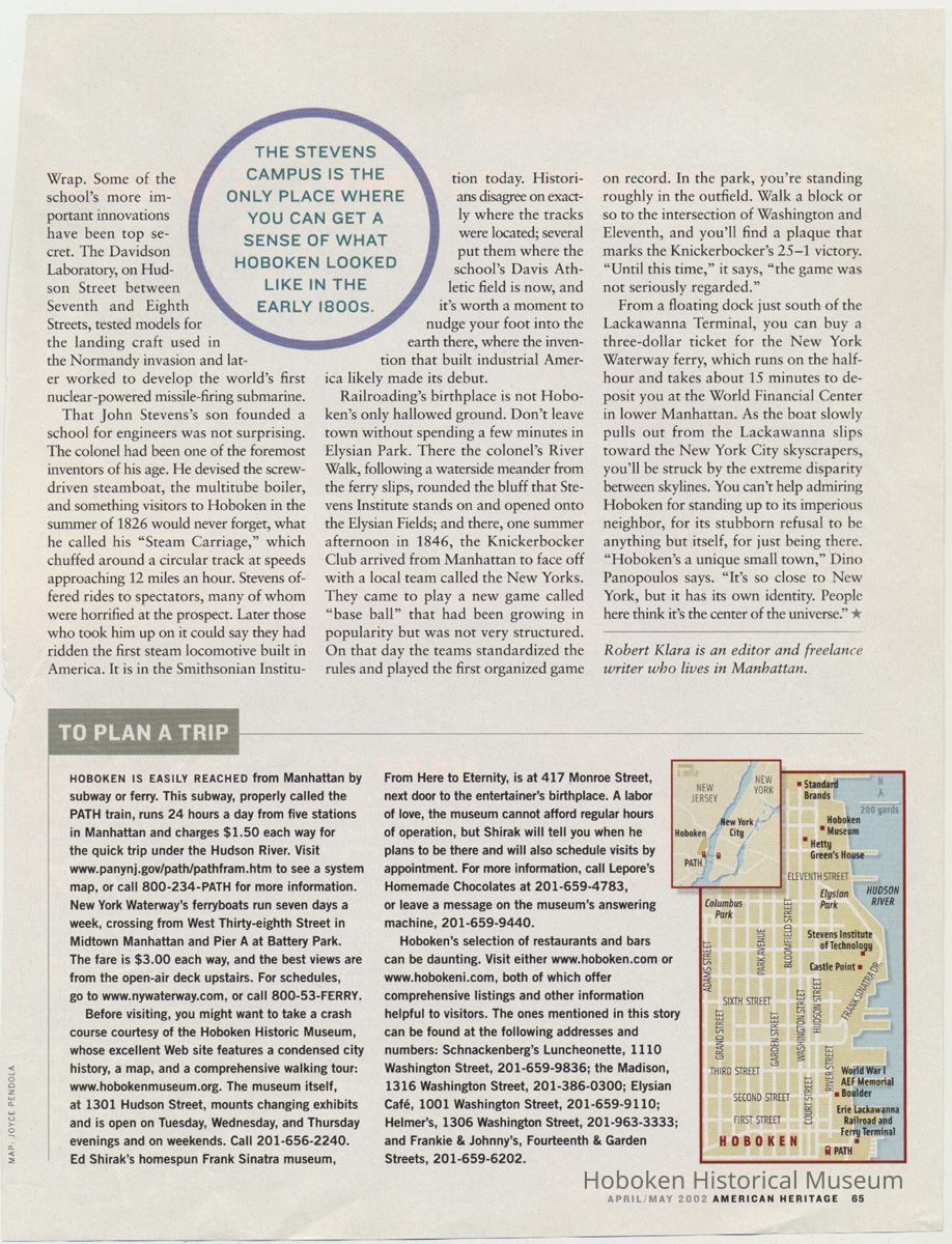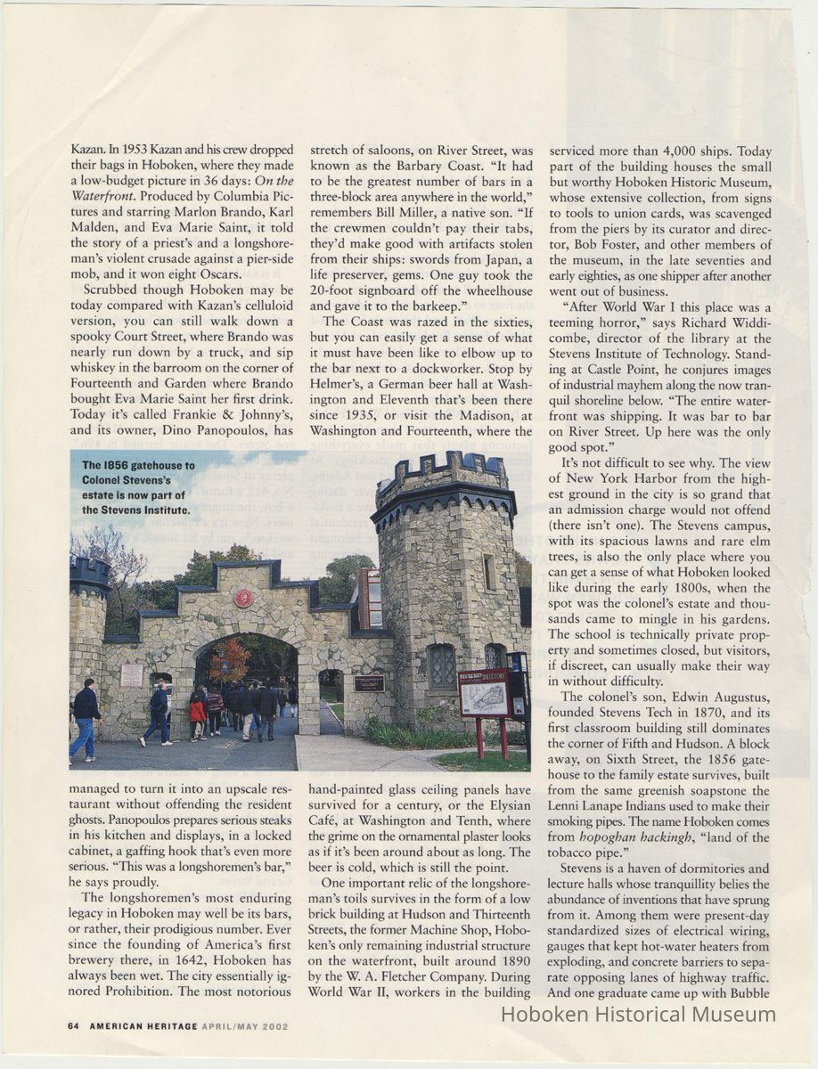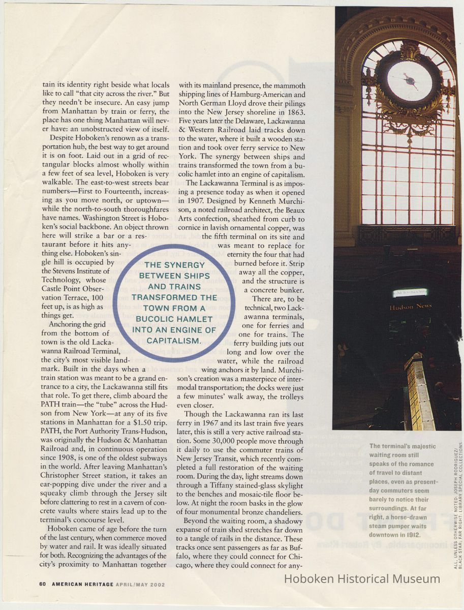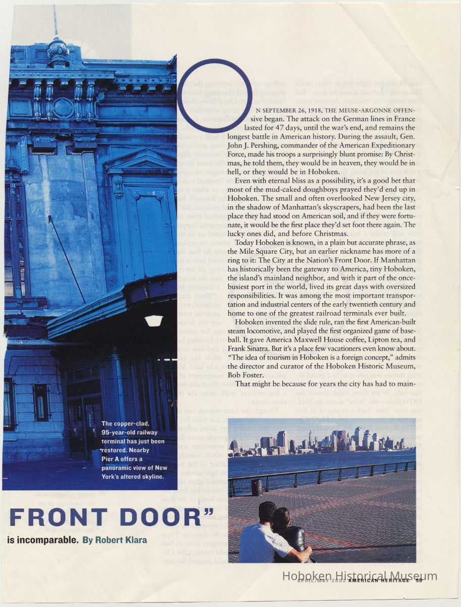 Article: "The City at the Nation's Front Door." By Robert Klara. American Heritage, April - May, 2002, pp. 58-65. Leaves as cut from magazine.