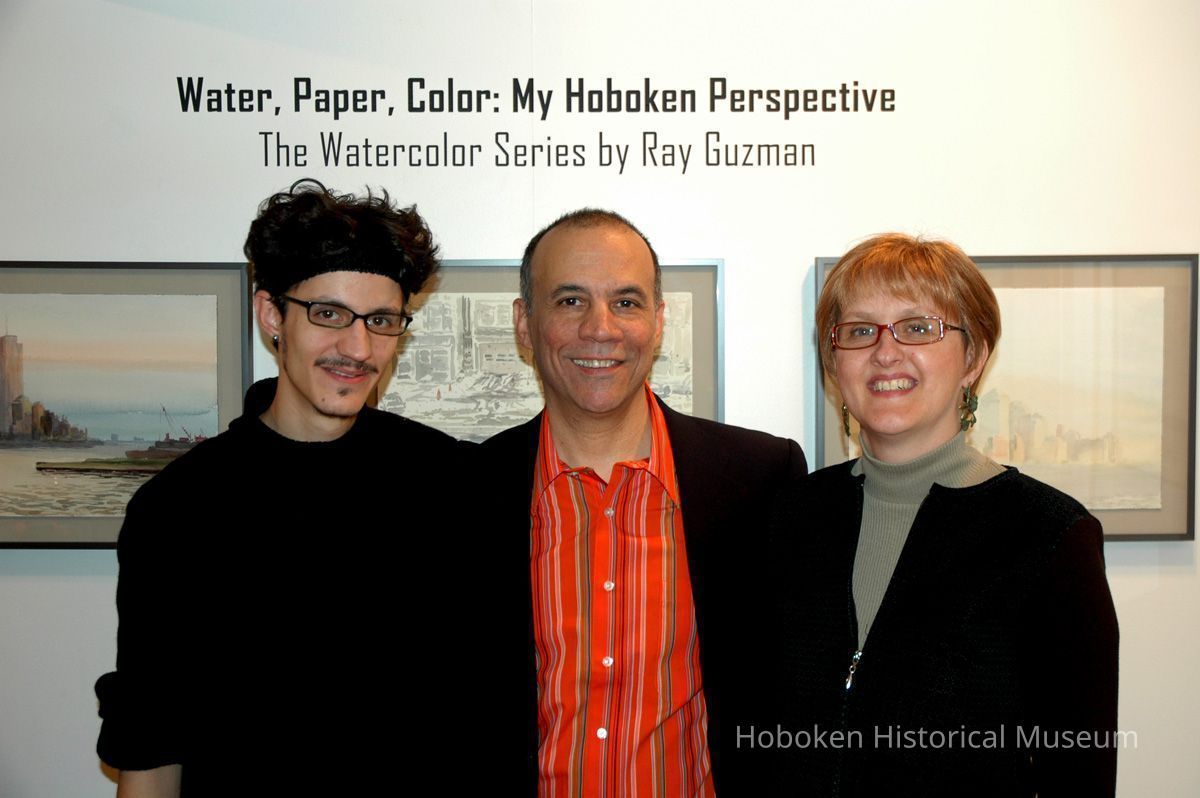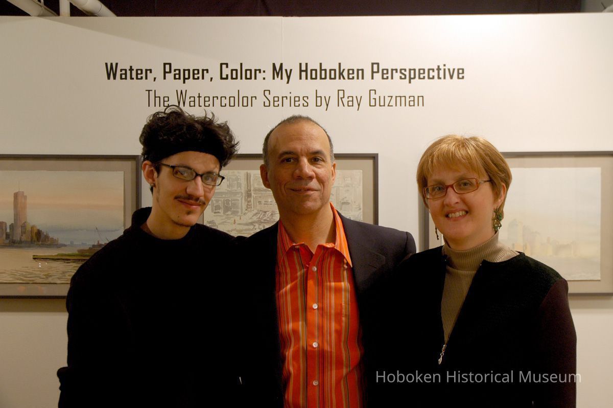 Color photographs, three, of Noah, Ray and Renata Guzman at opening reception for exhibition, Watercolors by Ray Guzman, Upper Gallery, Hoboken Historical Museum, Hoboken, November 19, 2006.
