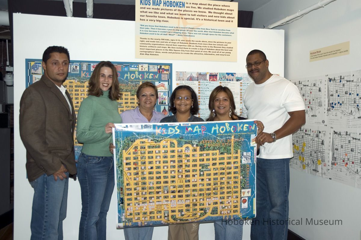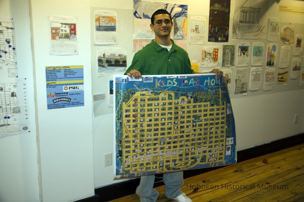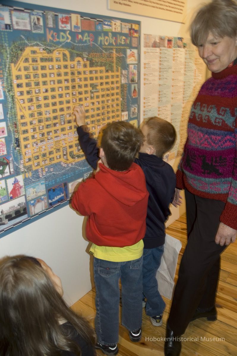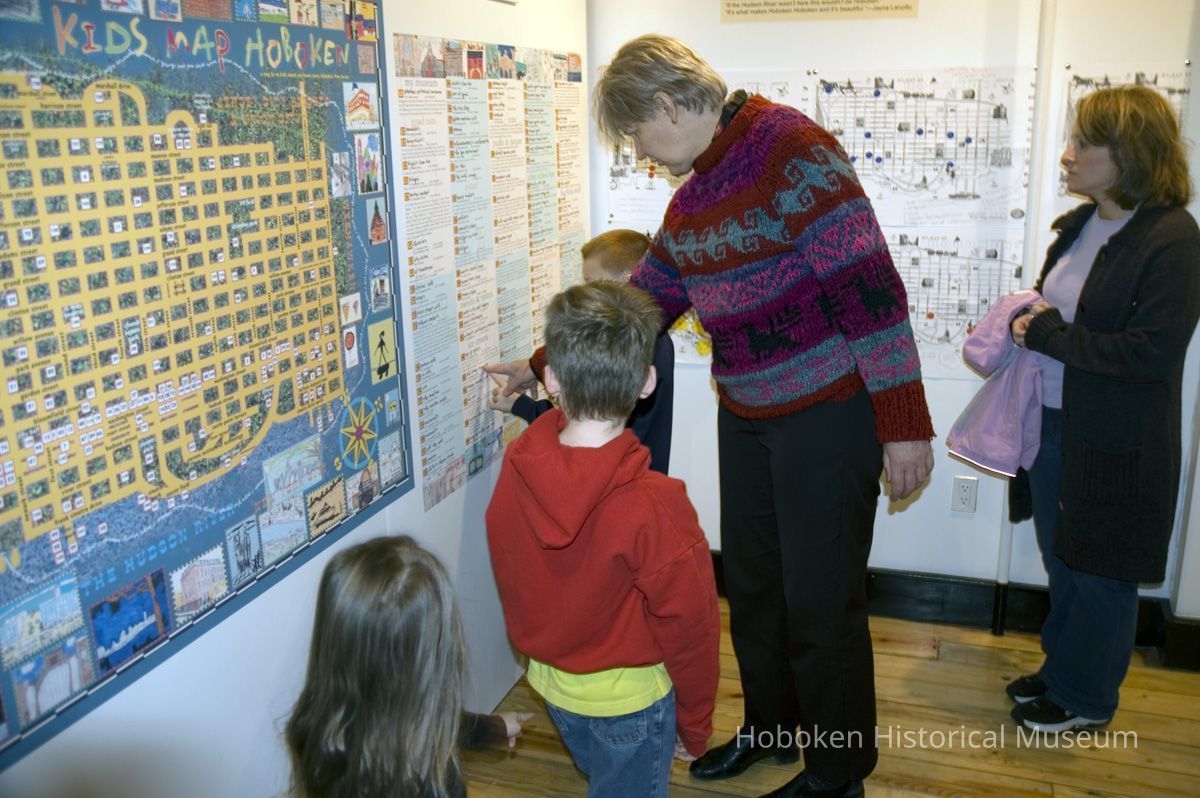 Color photos, 16, of opening reception for Kids Map Hoboken exhibit, Upper Gallery, HHM, Hoboken, October 15, 2006.