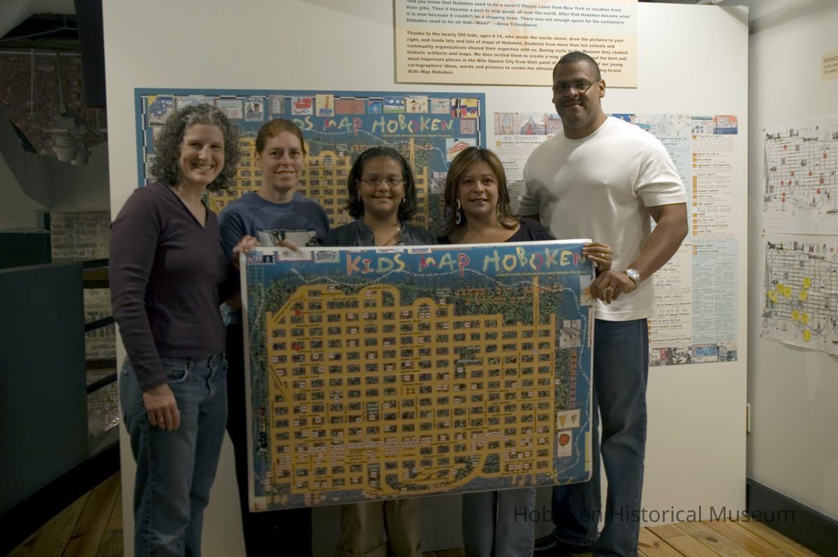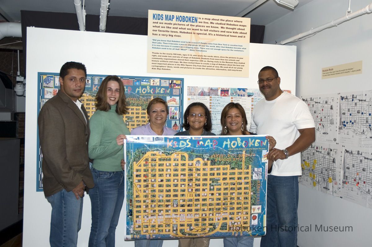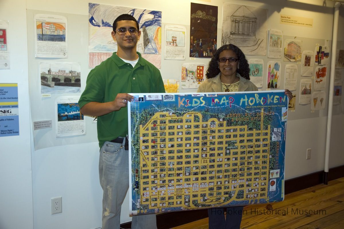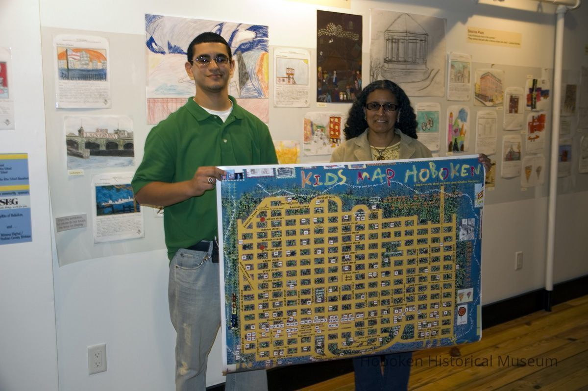 Color photos, 16, of opening reception for Kids Map Hoboken exhibit, Upper Gallery, HHM, Hoboken, October 15, 2006.