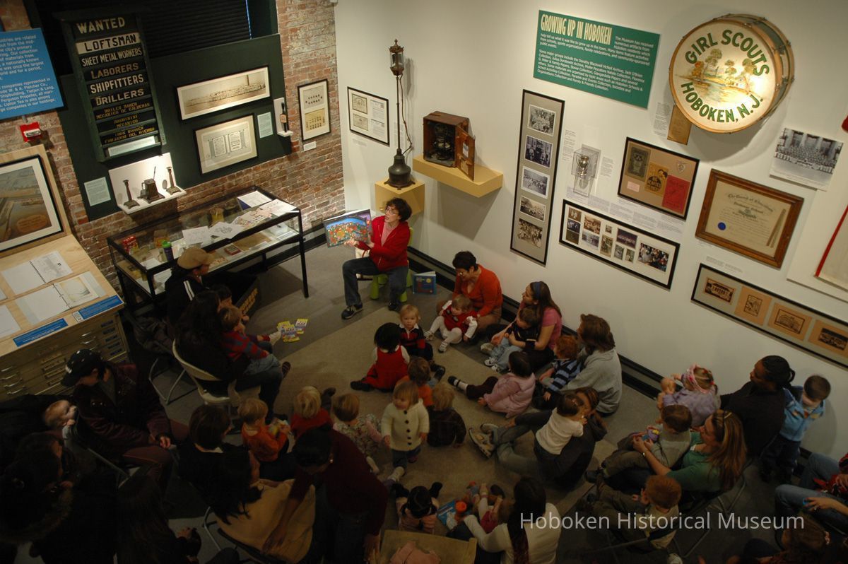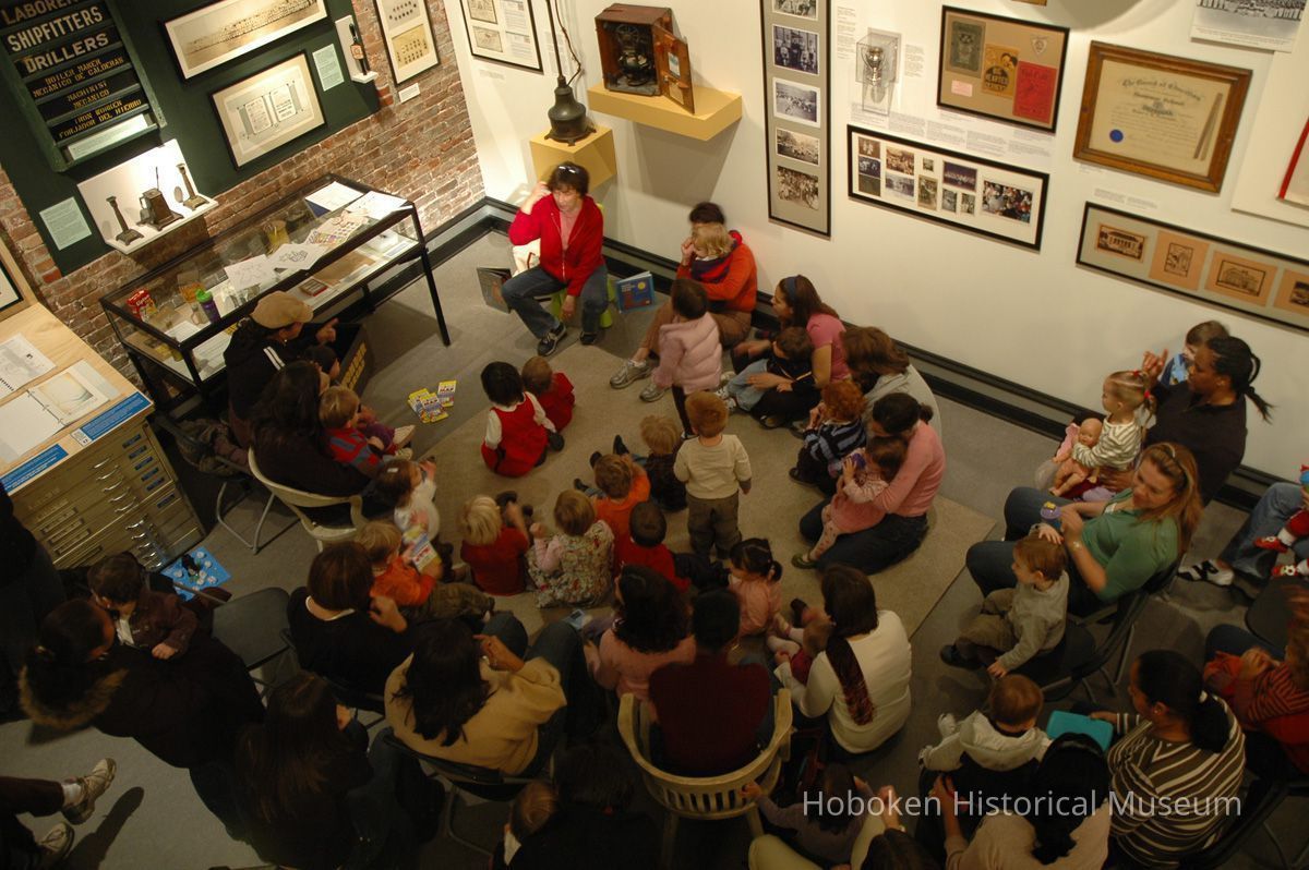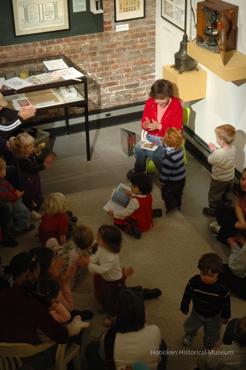 Color photos, 16, of Story Time reading by Penny Metsch for pre-school children at Hoboken Historical Museum, Hoboken, December 6, 2006.