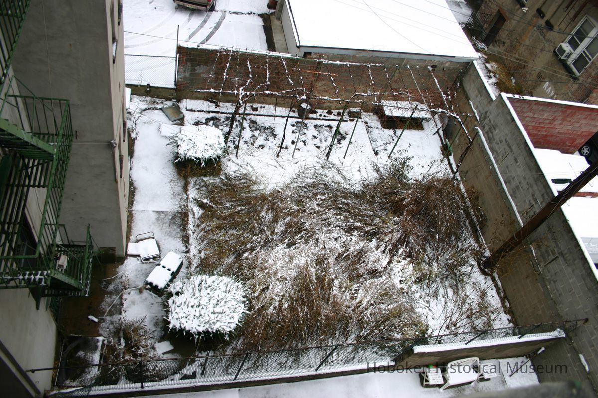 Color photographs, three, of backyard of 728 Willow Avenue with light snow, December 4, 2005.
