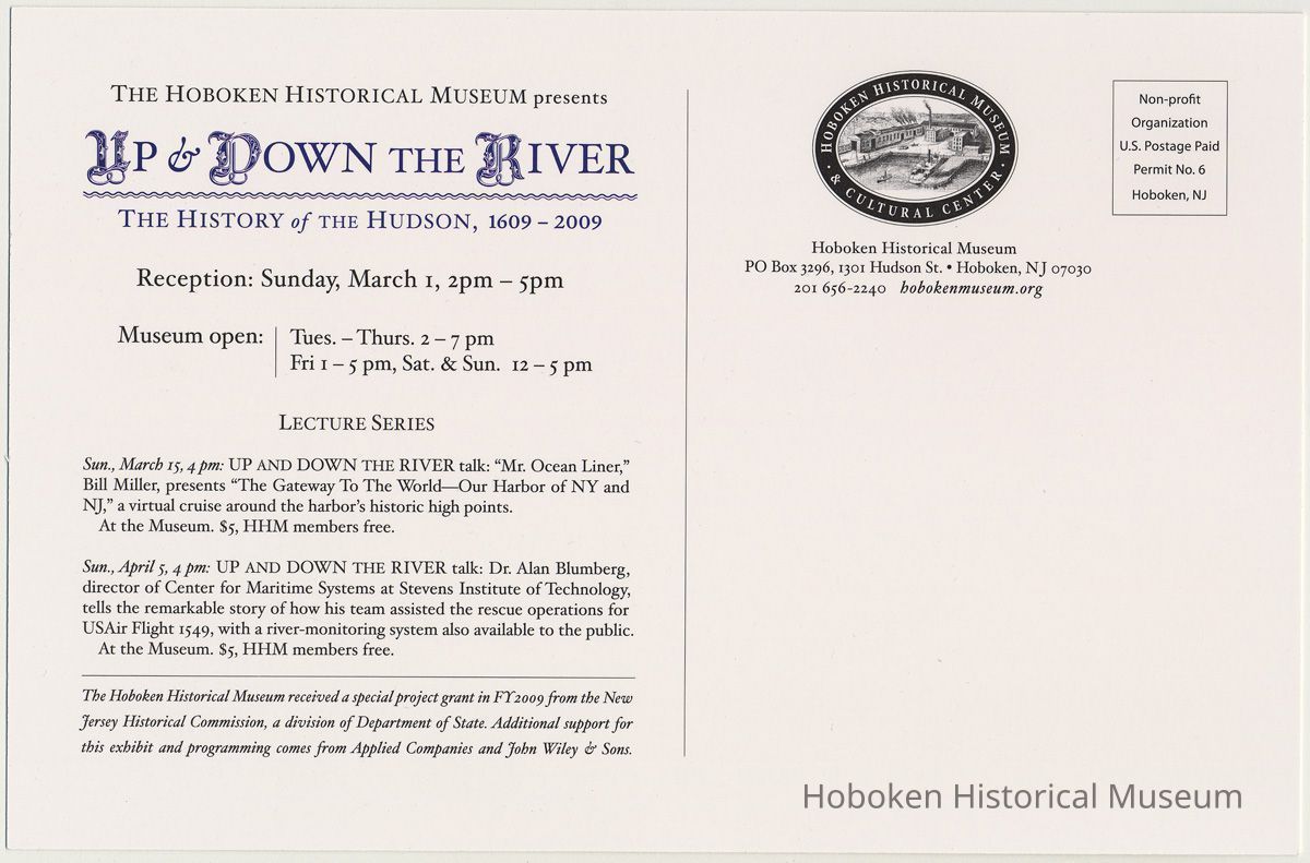 Postcard: Up & Down The River: The History of the Hudson, 1609-2009. HHM, Hoboken, March 1, 2009.