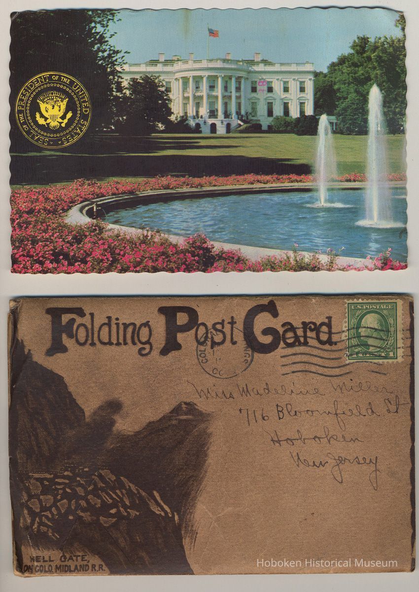 6. Color photographic postcard: The White House, South Portico, sent to Madeline Miller, postmarked Washington, D.C., 1978.