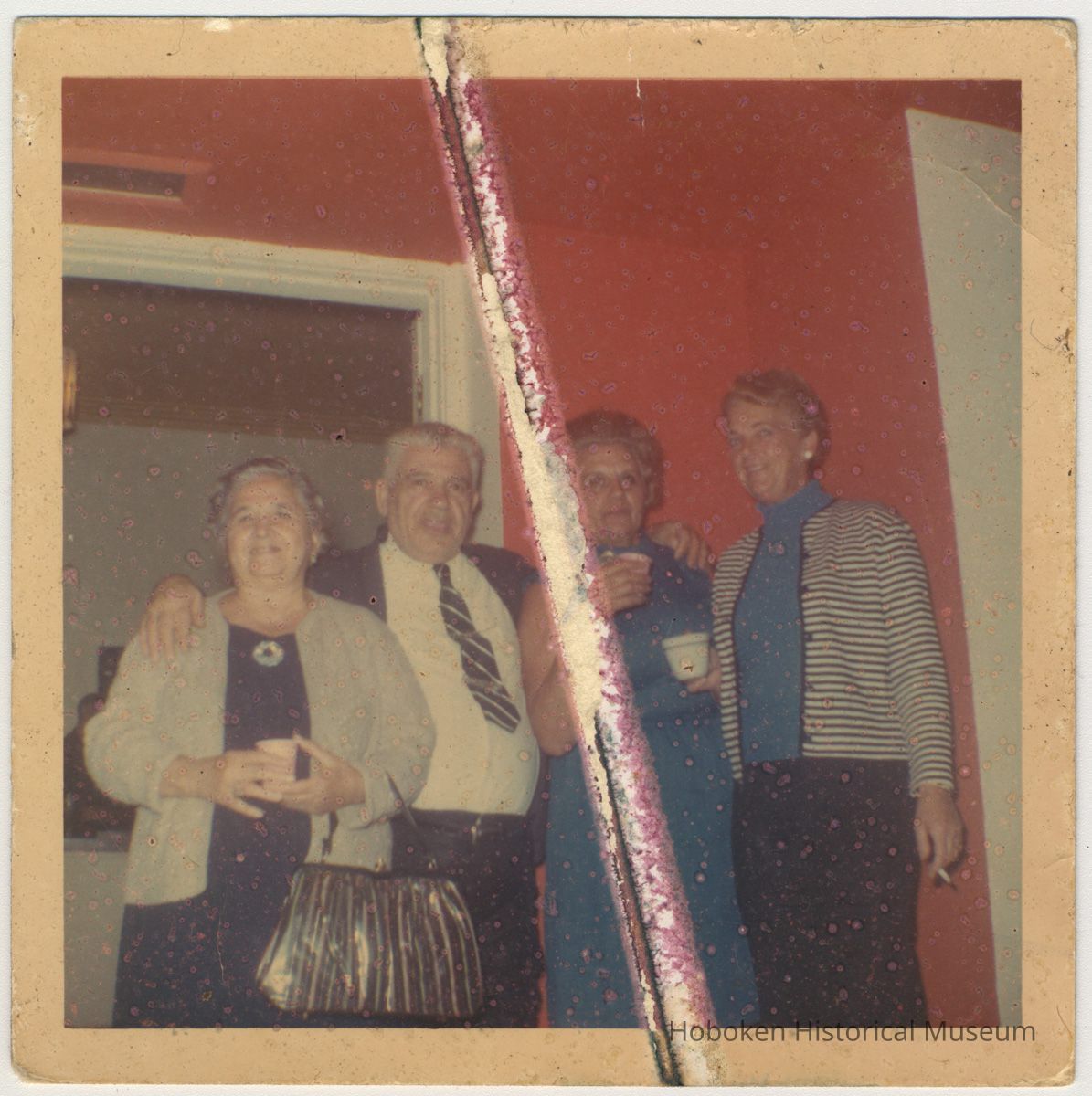 Color photo of Joe 'Biggie' & Rose Yaccarino (at left) with two unidentified women, no place, Feb. 1969.