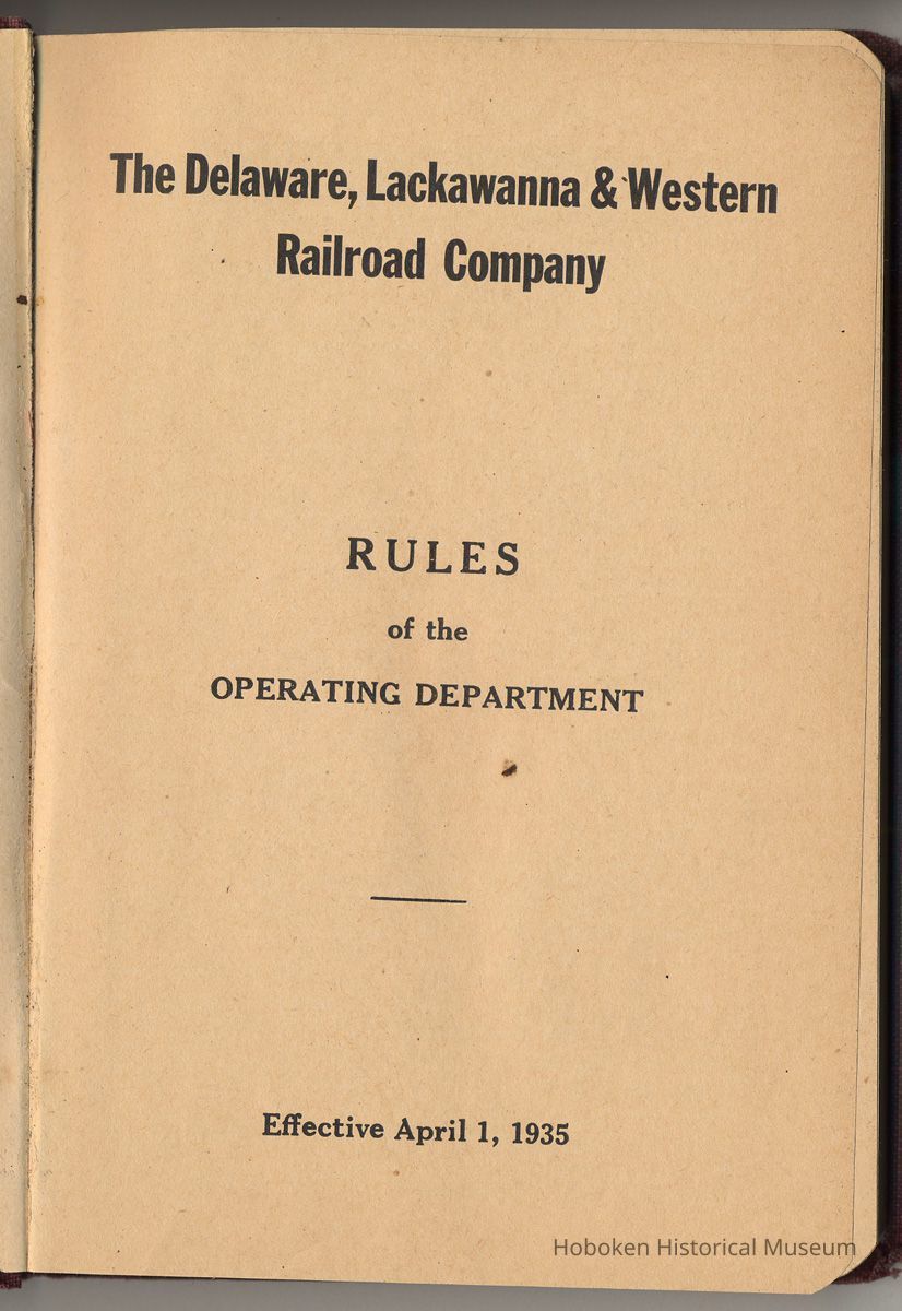 Book: Delaware, Lackawanna & Western Railroad Co. Rules of Operating Dept. Effective Apr. 1, 1935.