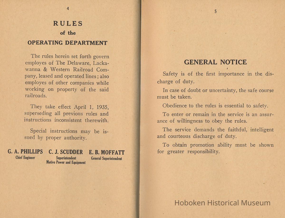 Manual: Delaware, Lackawanna & Western Railroad Company. Rules of the Operating Department. Effective April 1, 1935.