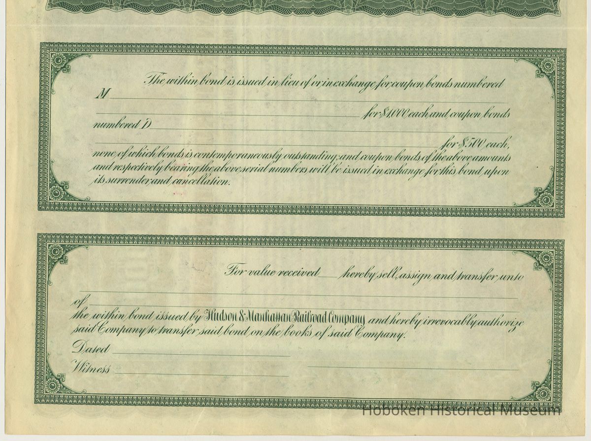 Bond: Hudson & Manhattan R.R. Co. Registered First Lien & Refunding Mortgage Bond, Series A, $1000. 1913. Unissued.