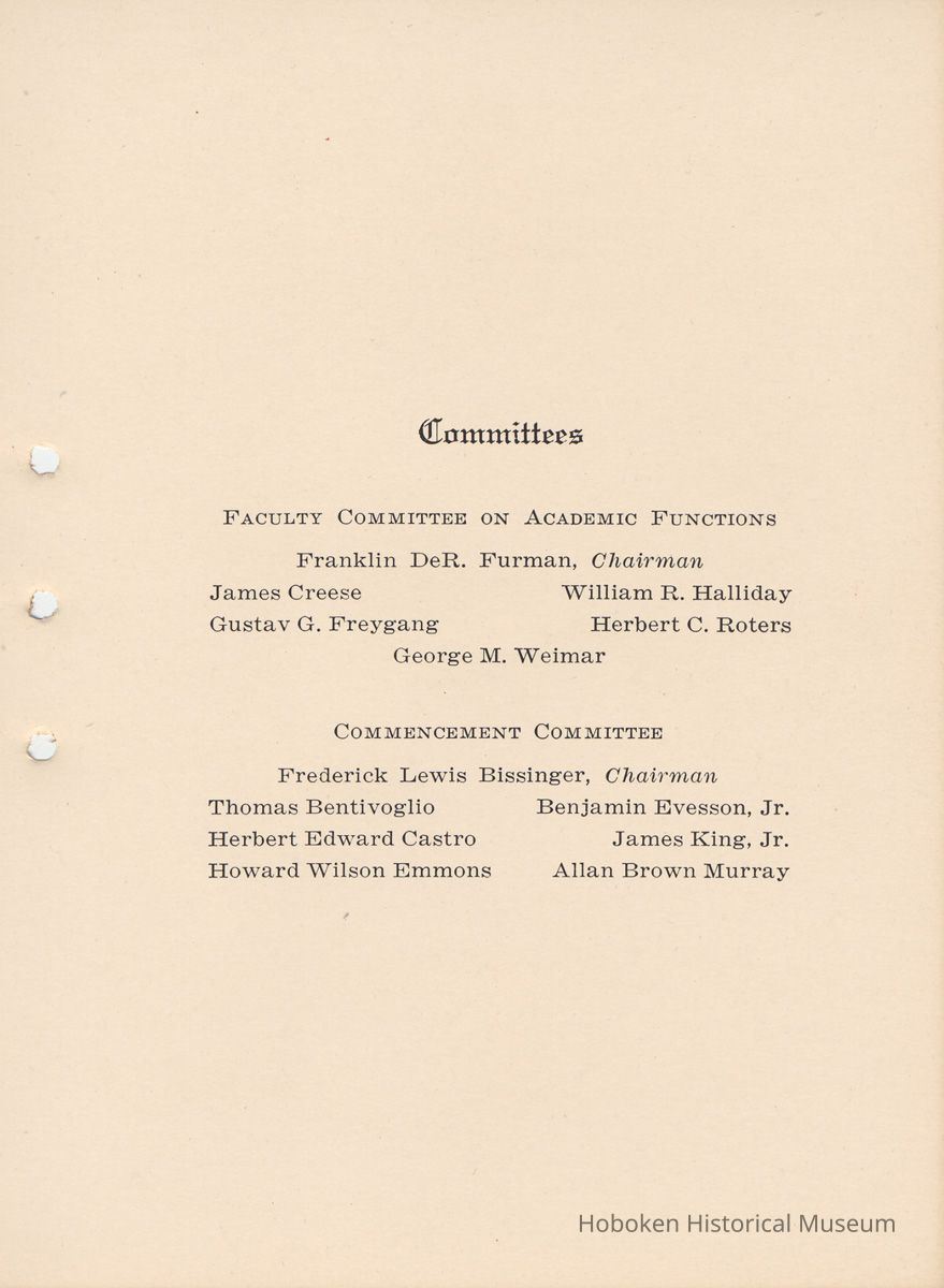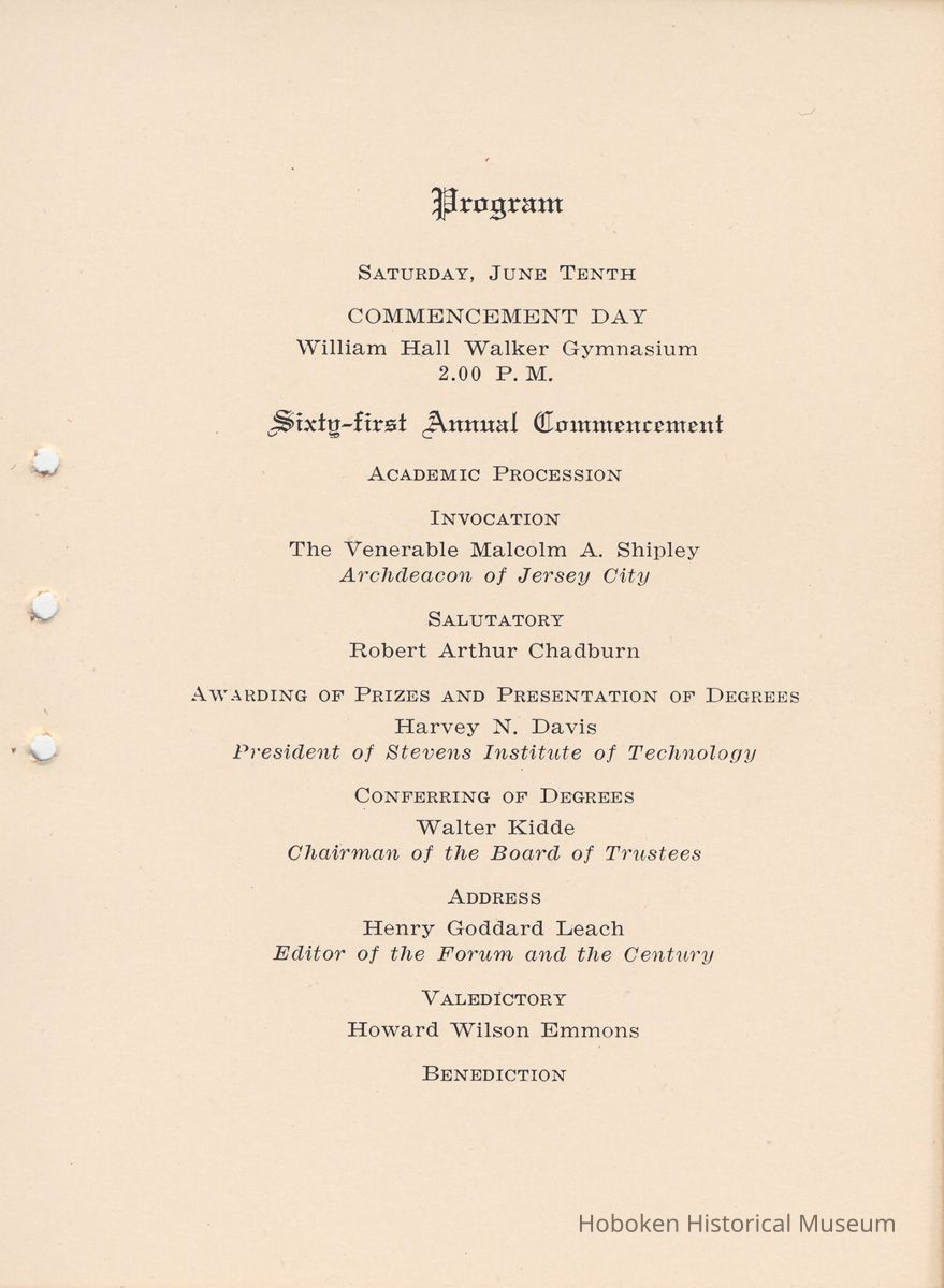 Stevens Institute of Technology. Commencement Program. June ninth and tenth, nineteen thirty-three. (Hoboken, June 9-10, 1933.)