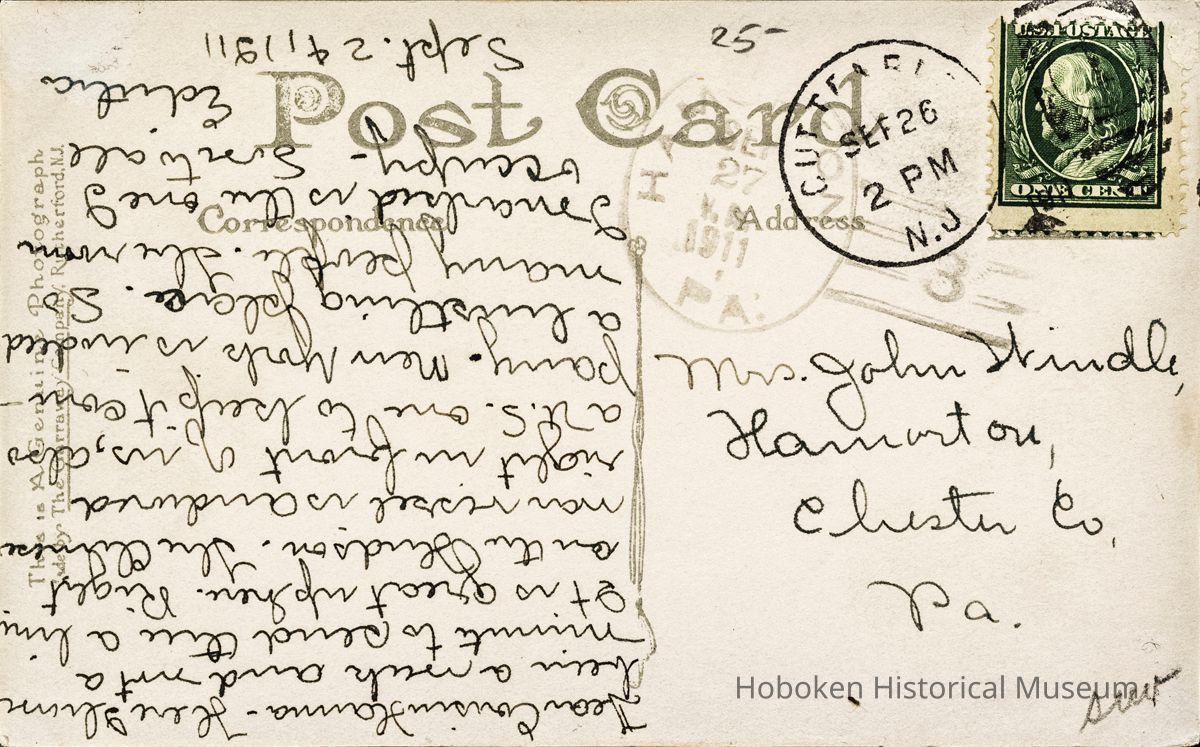 Postcard: 1027 33 Street, Woodcliff, NJ. Postmarked Sep 26, 1911 B&W 3 1/2" x 5 1/2"