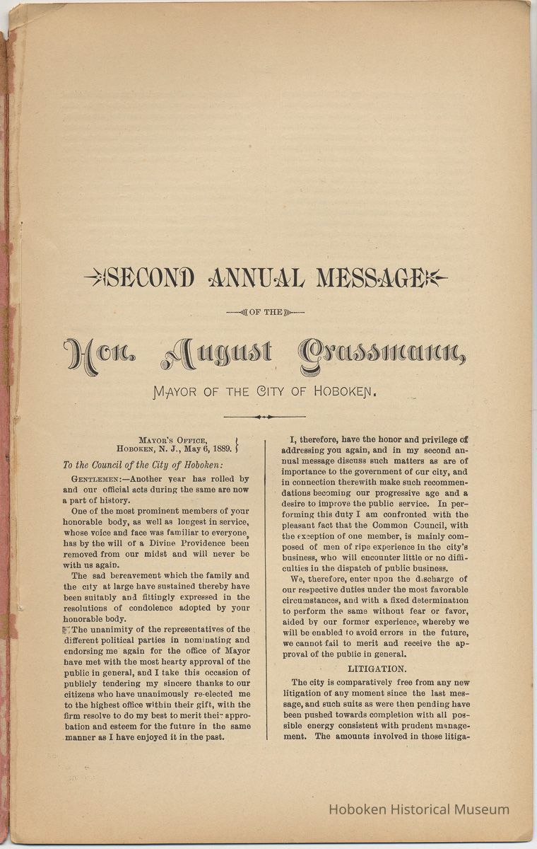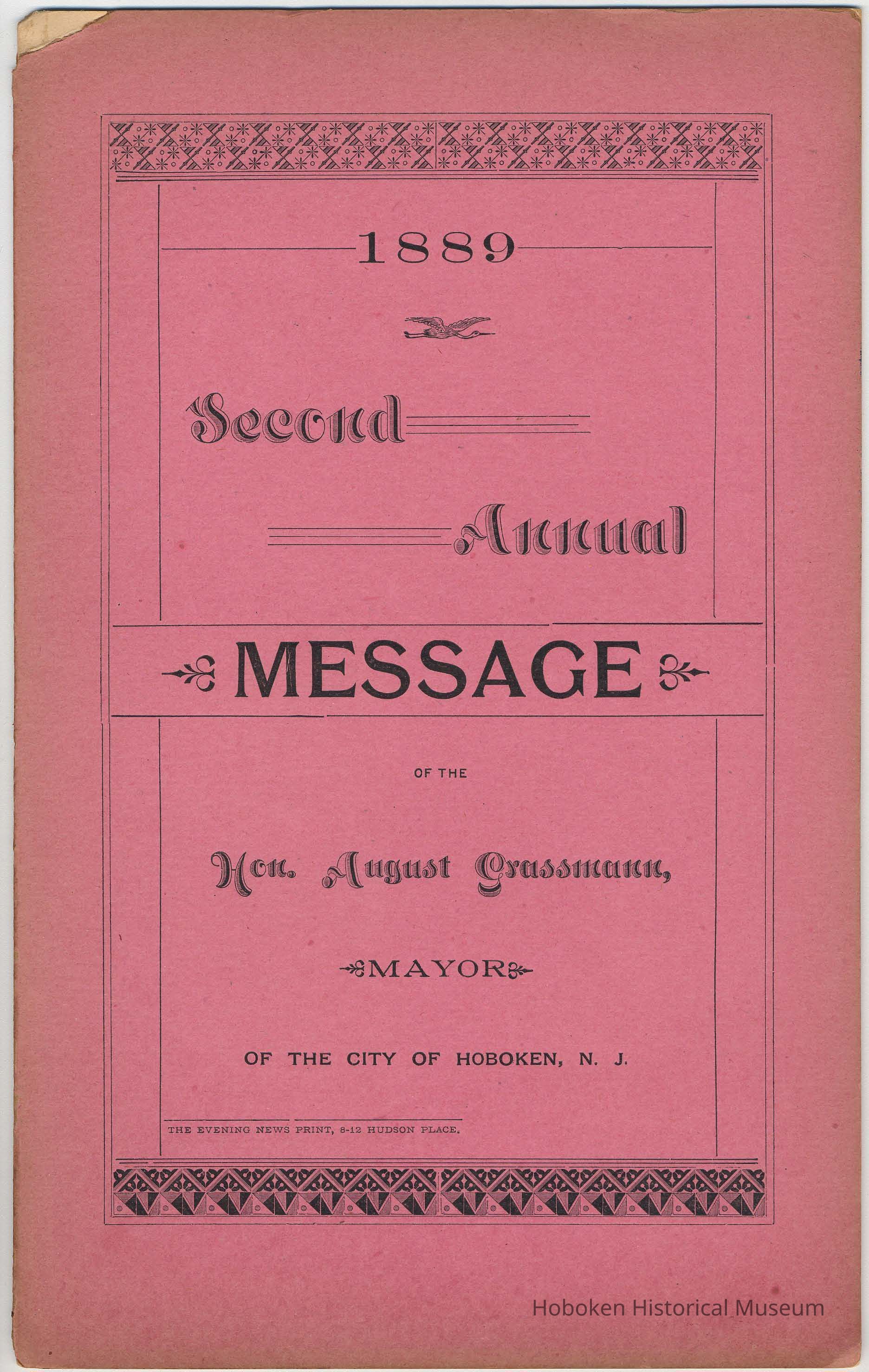 Second Annual Message of the Honorable August Grassman, Mayor of the City of Hoboken, 1889.