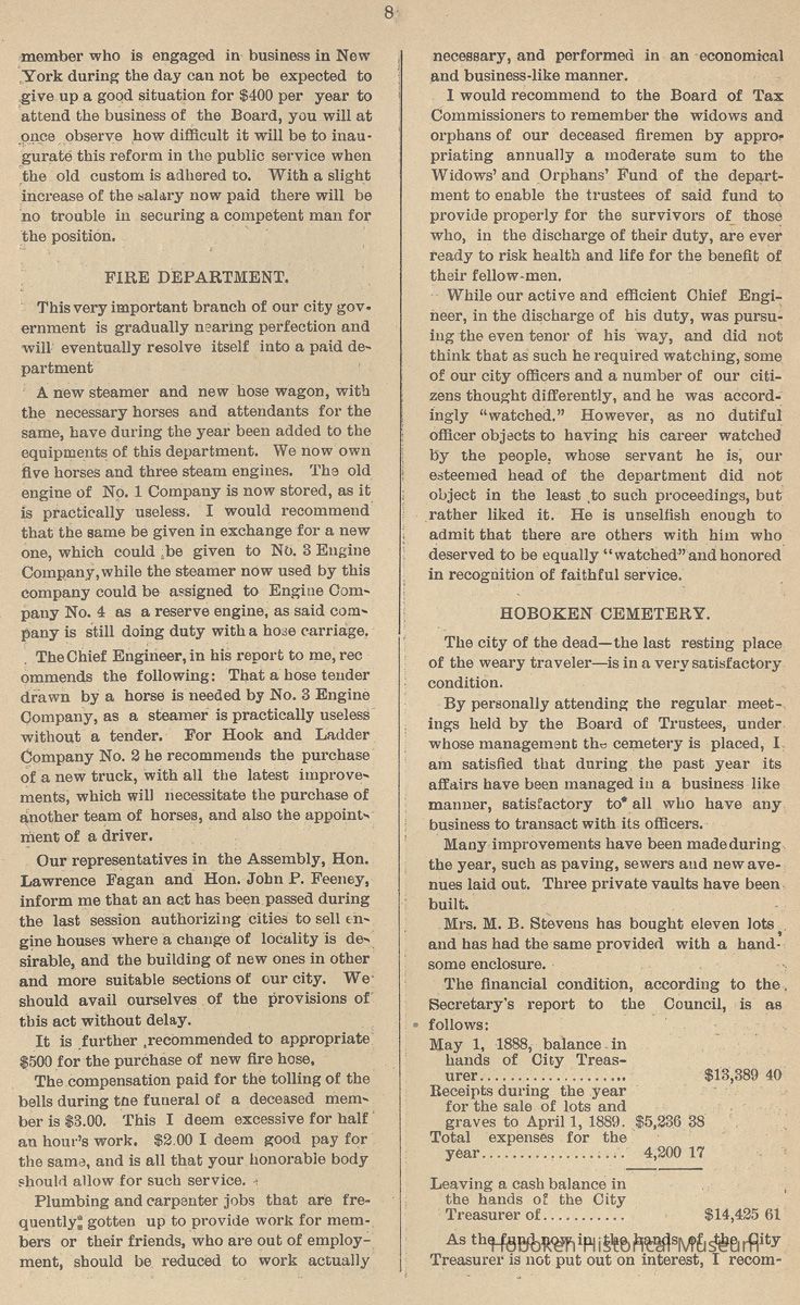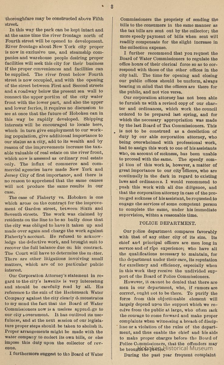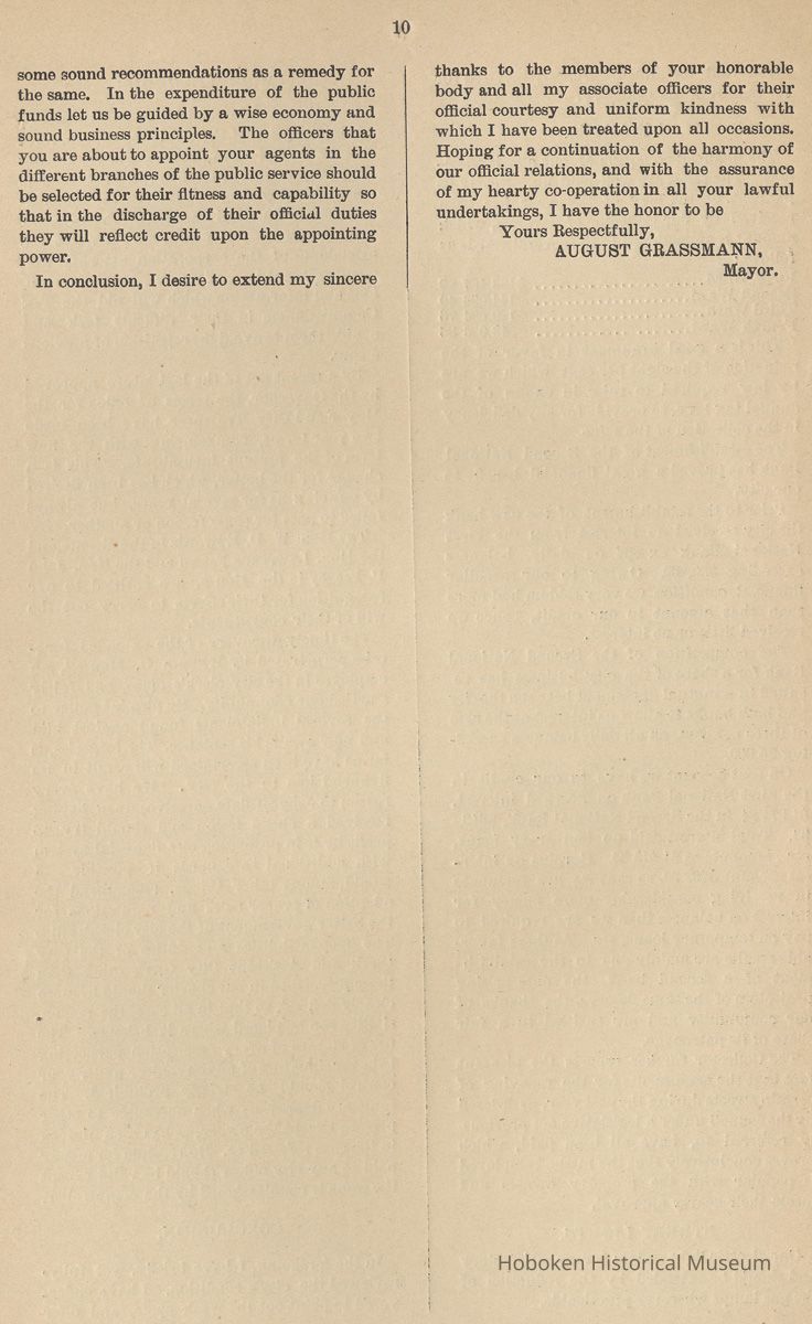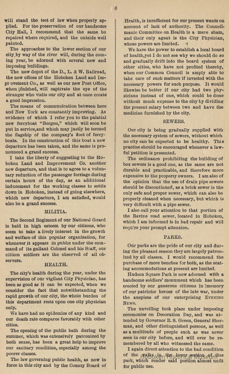 Report: 2nd Annual Message of Mayor August Grassman, City of Hoboken, 1889.