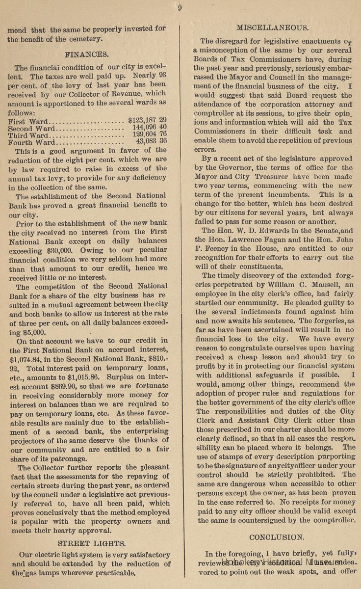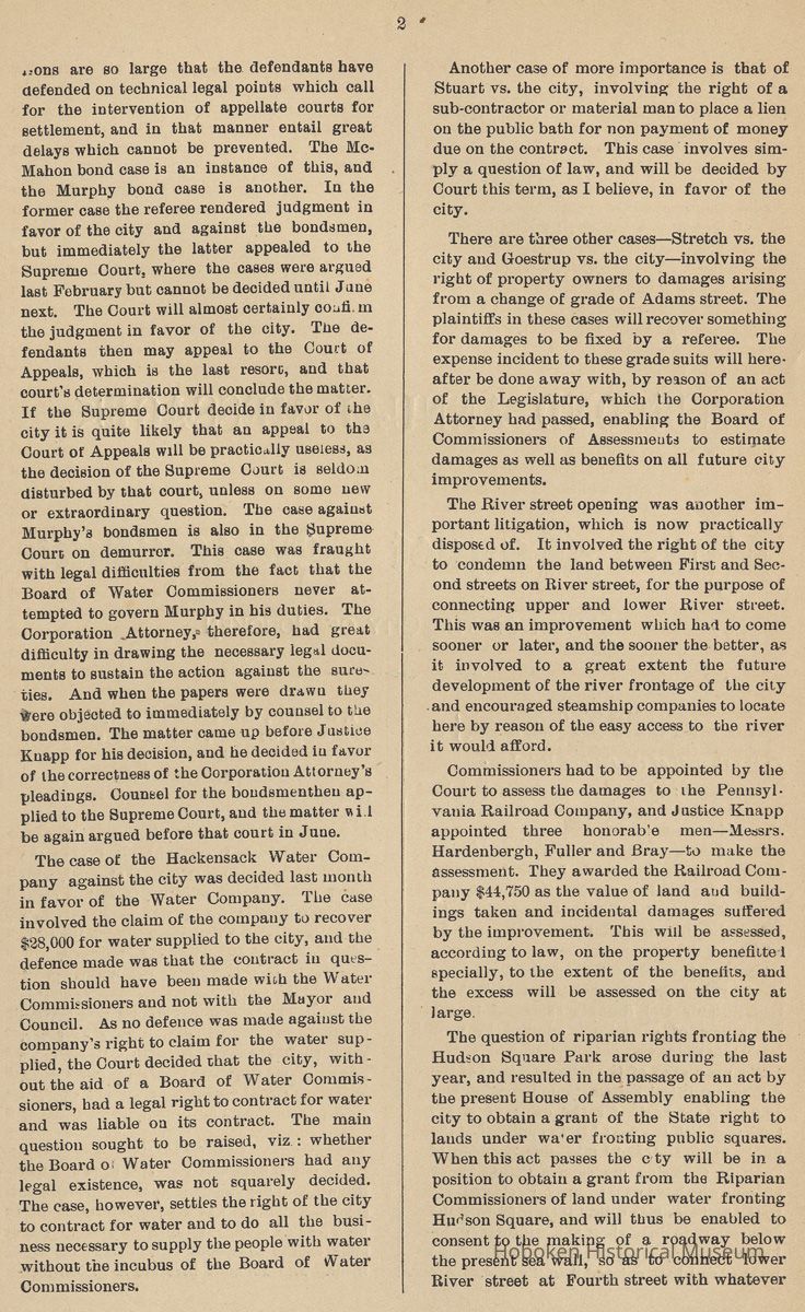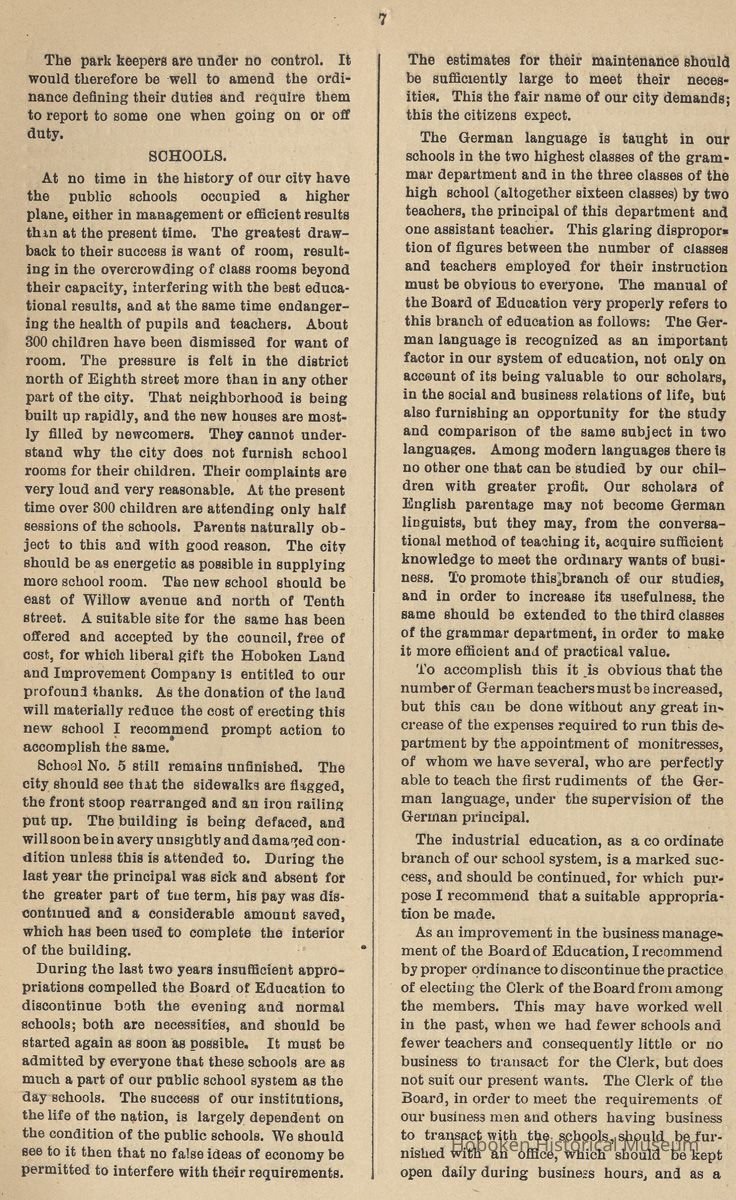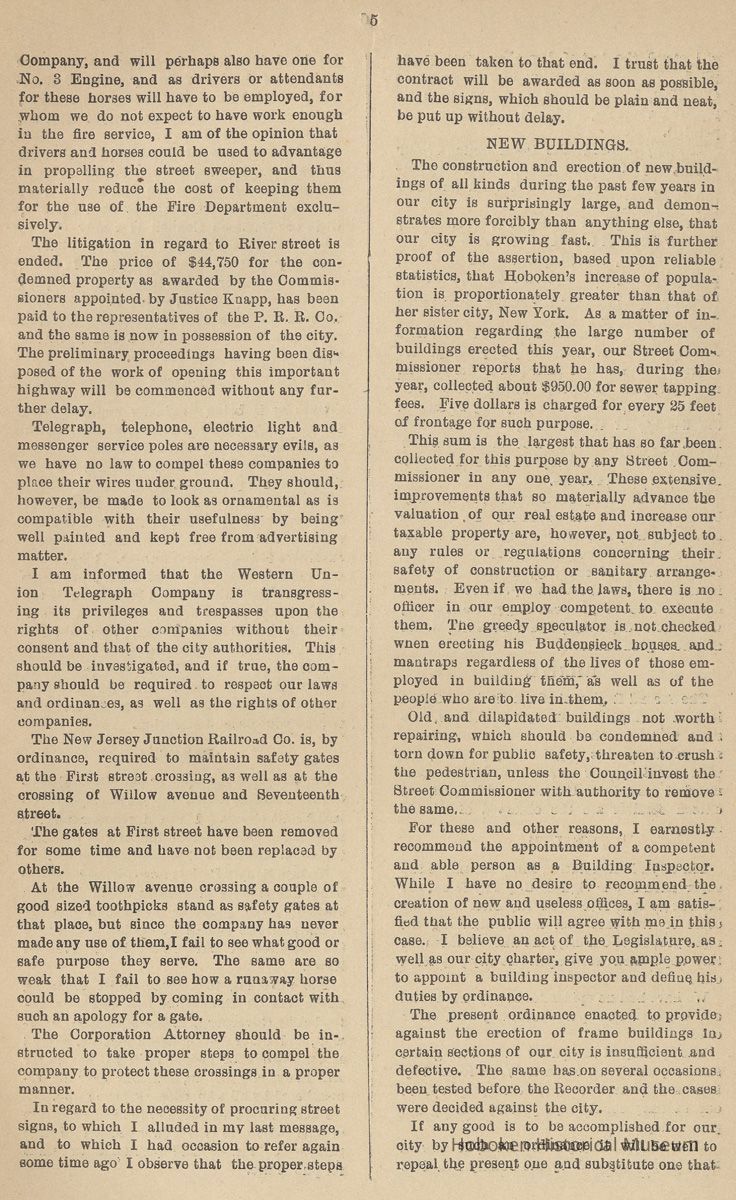 Report: 2nd Annual Message of Mayor August Grassman, City of Hoboken, 1889.