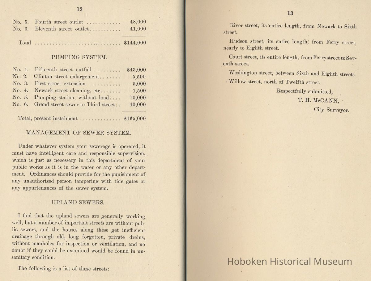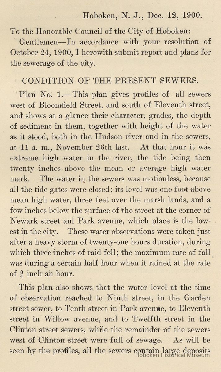 Report of City Surveyor Thos.[Thomas] H. McCann to the Mayor and Council of the City of Hoboken, N.J. upon the Survey of the Meadow District, December 12, 1900.