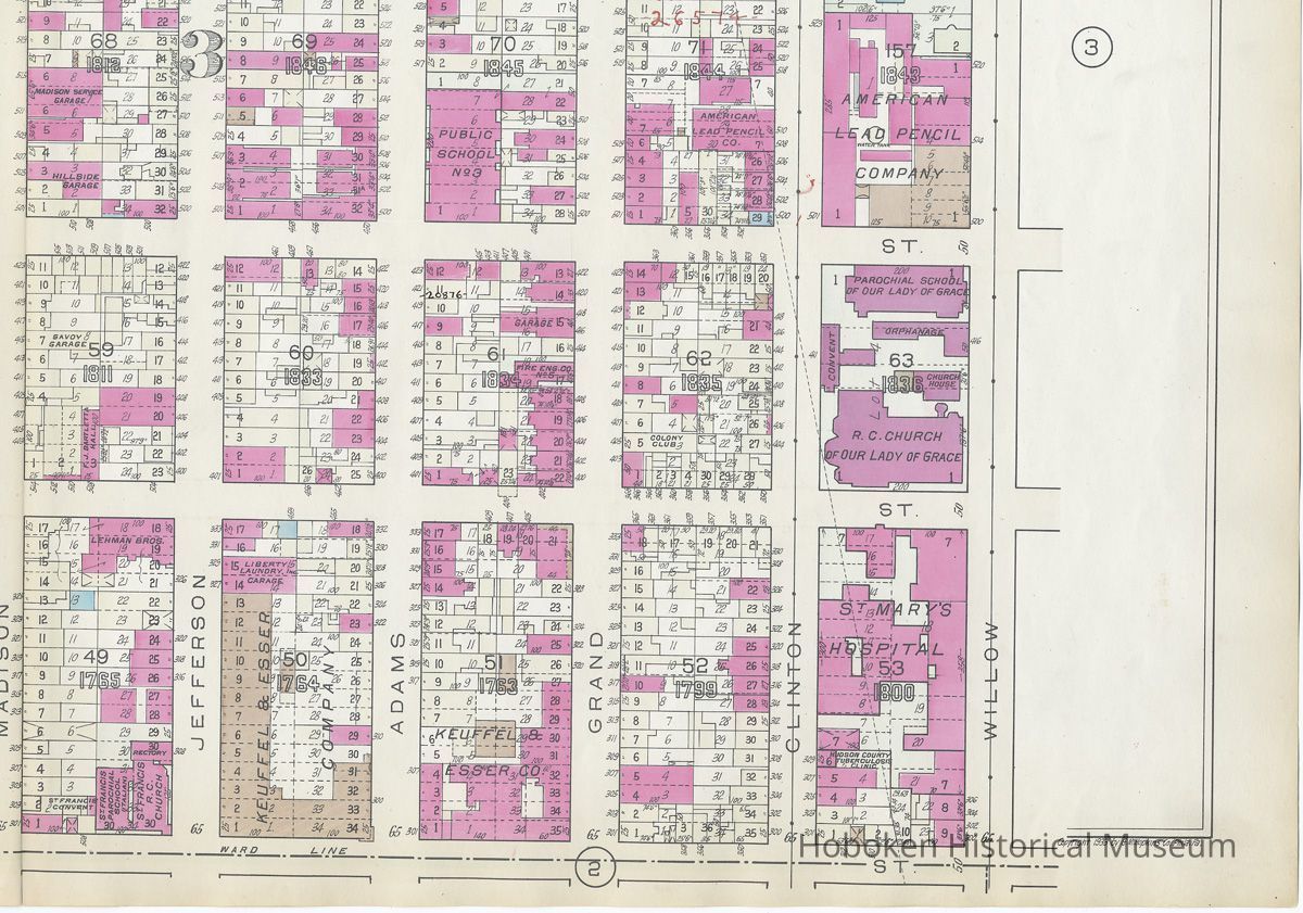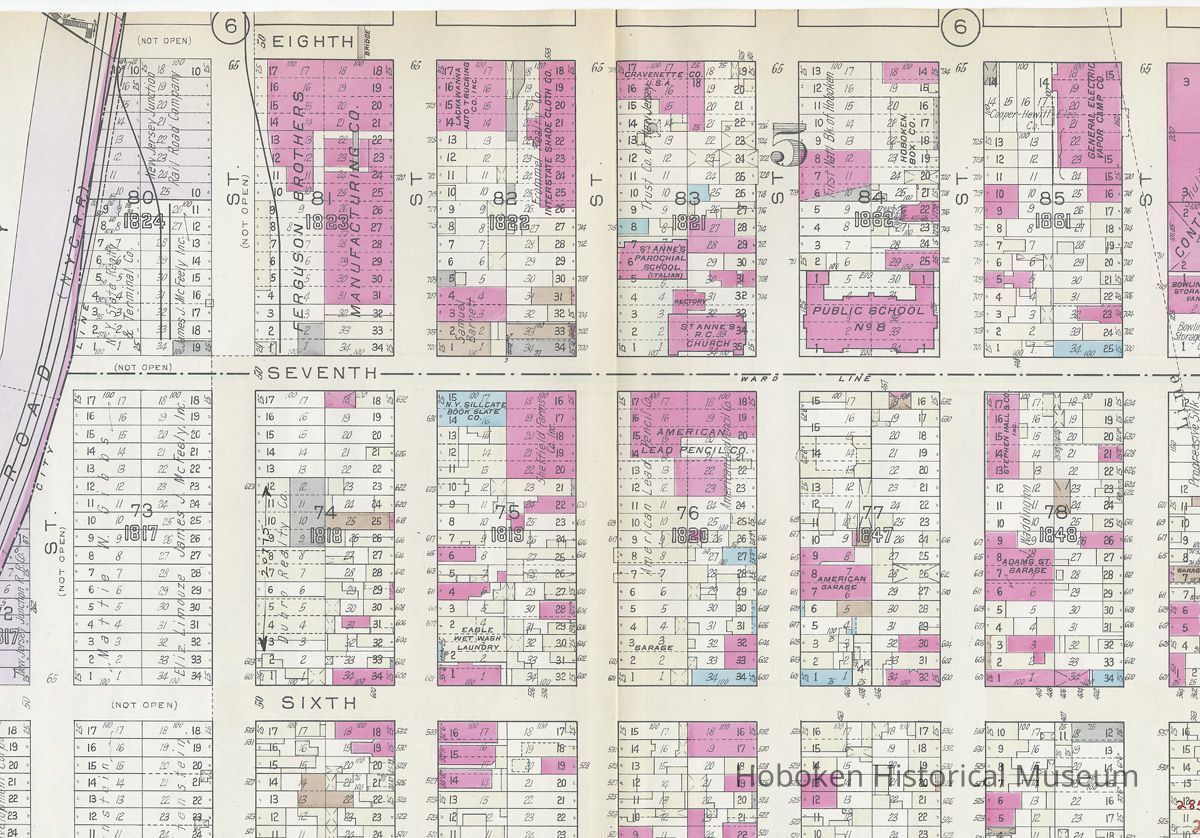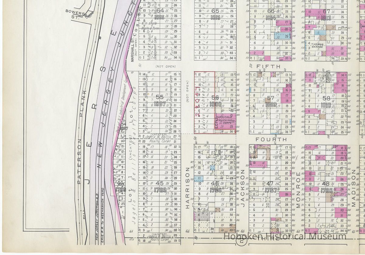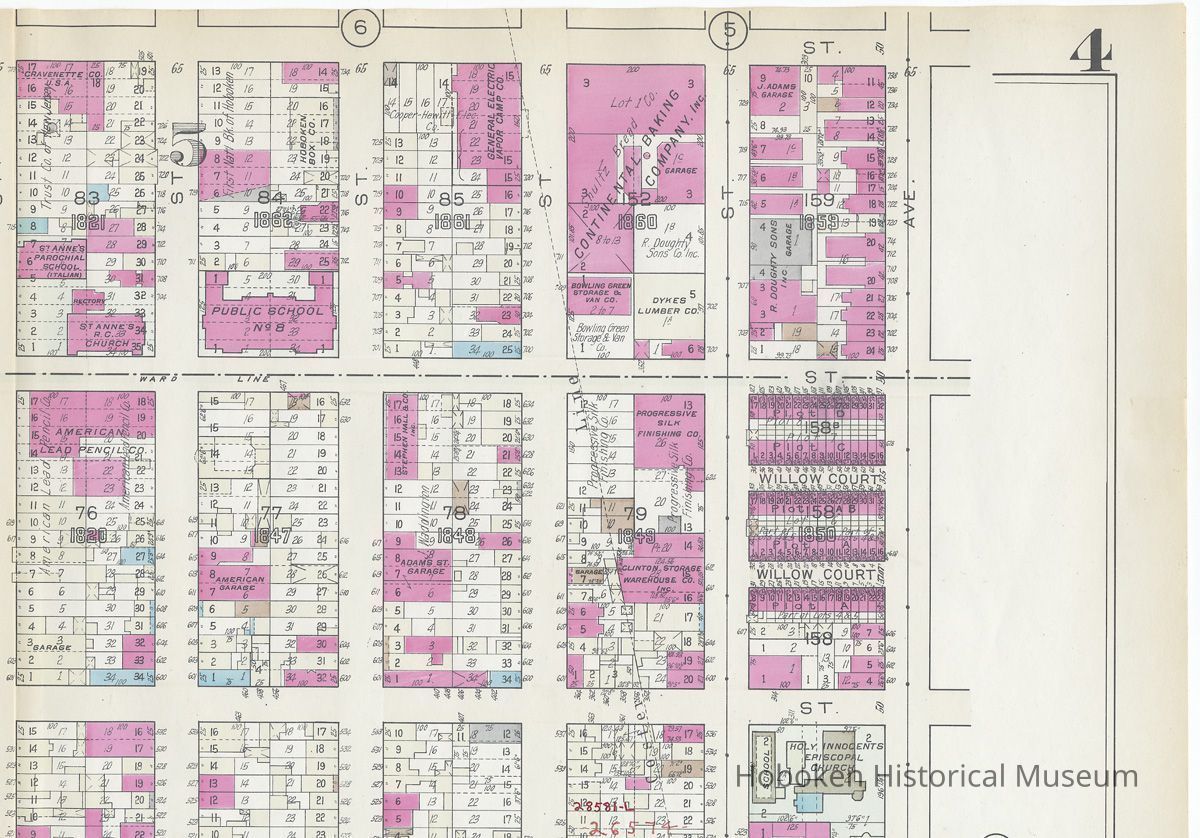 Map: Hoboken, 3rd to 8th Sts., Willow Ave. to Paterson Plank Rd.; Hopkins Atlas of Hudson County, V.2, Plt. 4, 1934.