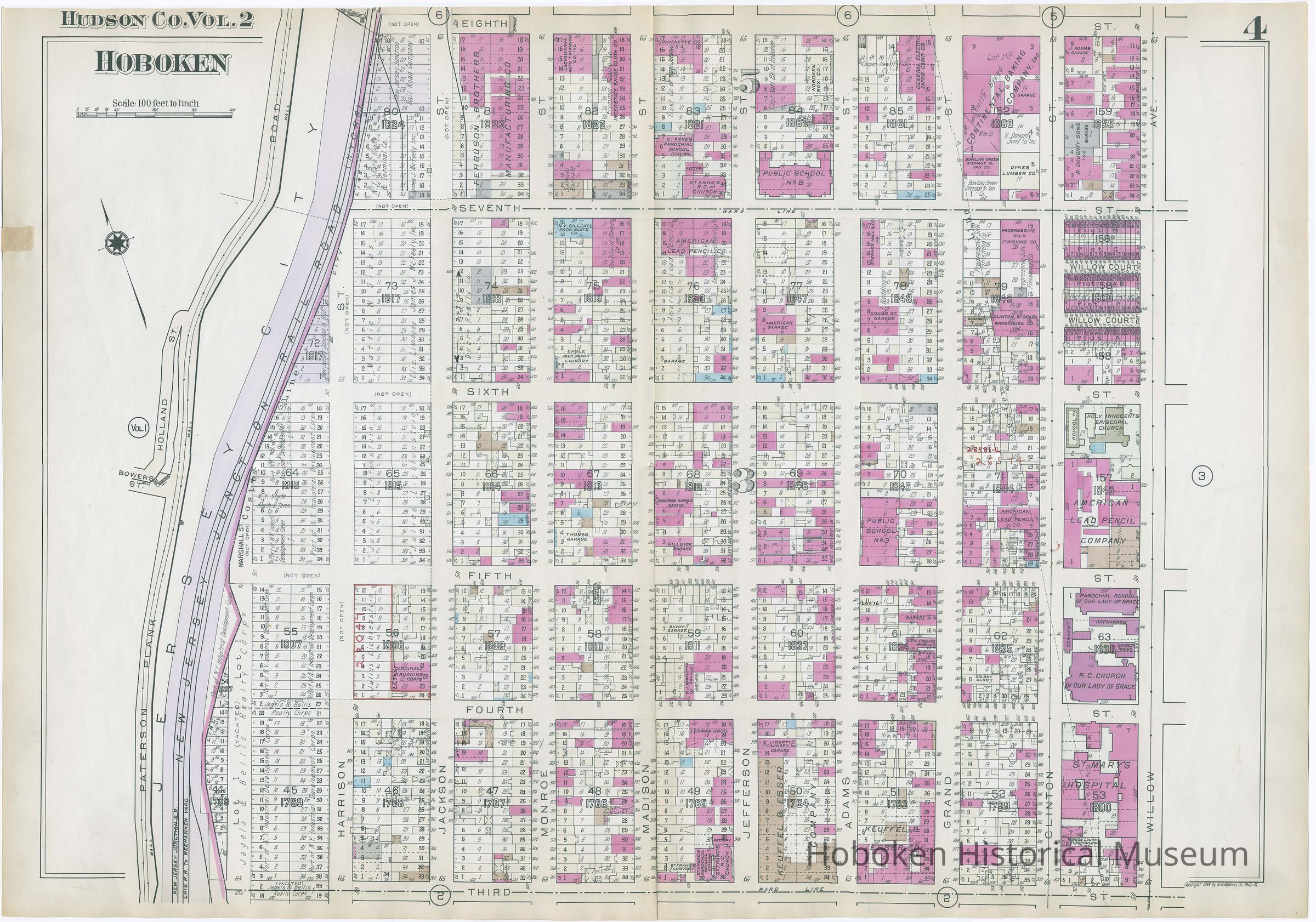 [Map] Plate 4, western Hoboken; Third to Eighth Streets; Willow Avenue to Paterson Plank Road; published in Hopkins' Atlas of Hudson County, Volume 2, copyright 1933. [Philadelphia: G.M. Hopkins, 1934.]