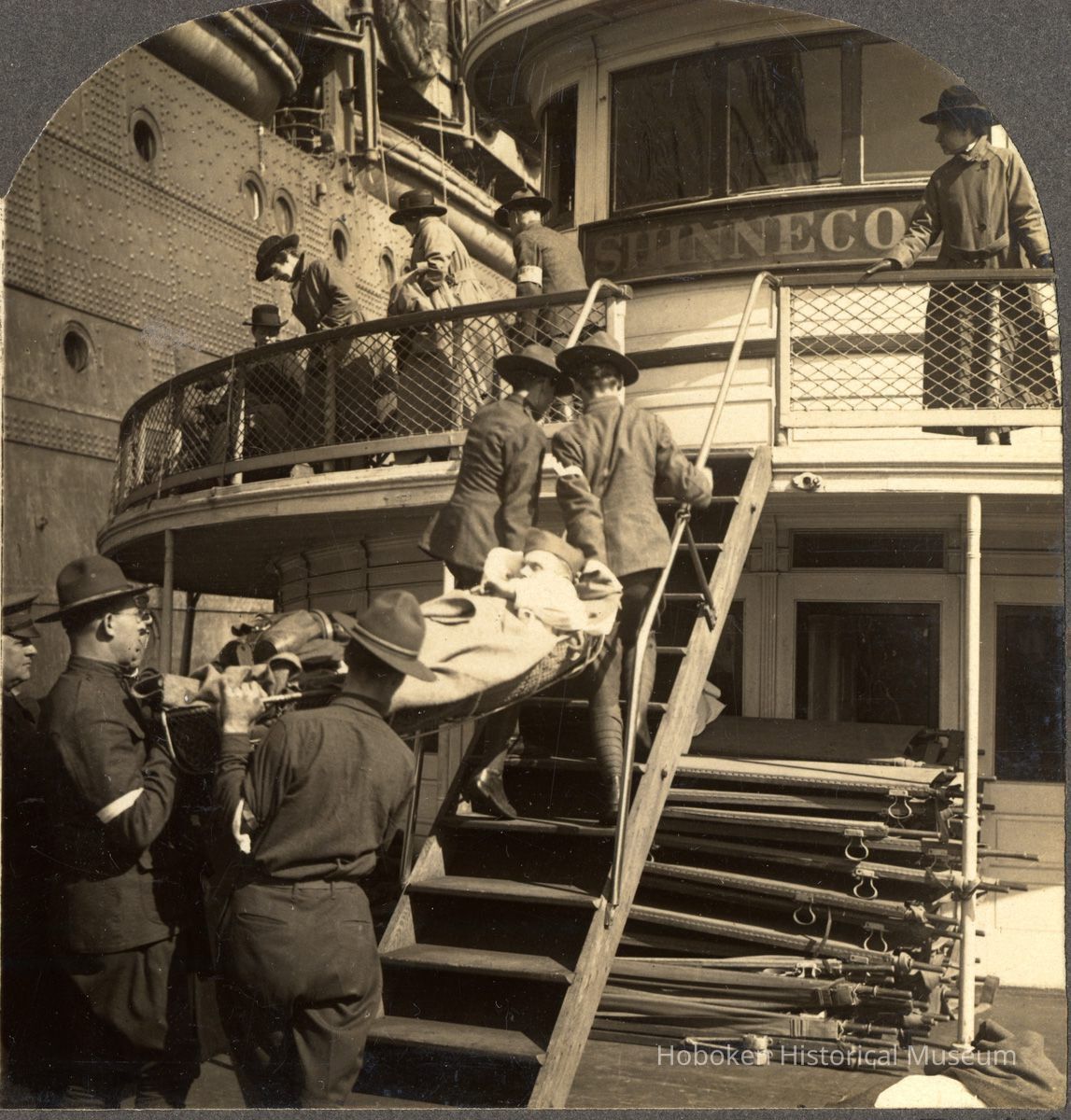 Stereoview: V91241 - Severely Wounded Being Transferred to Hospital Ship from Transport, Hoboken.