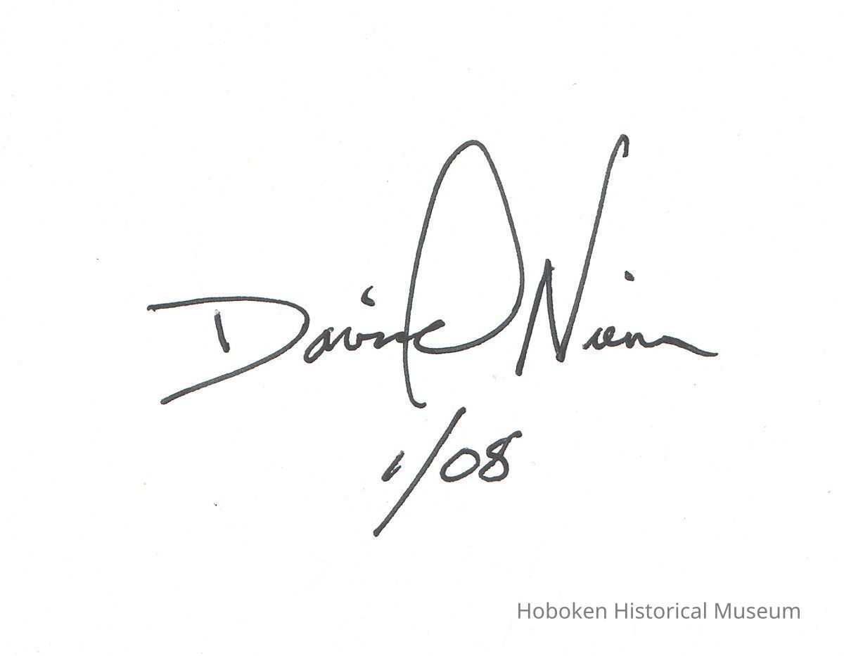 Color photo of pilings for Pier C Park with New York City in the background, Hoboken, January 2008. Digital print, 13" x 19" wide; image 10-1/2" high x 14-1/2" wide. Photograph by David Nevis. Signed and dated on reverse at lower right corner.
