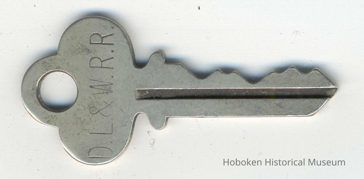 Padlock stamped "D.L. & W. R.R." (Delaware, Lackawanna & Western Rail Road) with key, ca. 1910-20. Bronze, 3-1/4" high (open) x 2" wide x 15/16" thick.