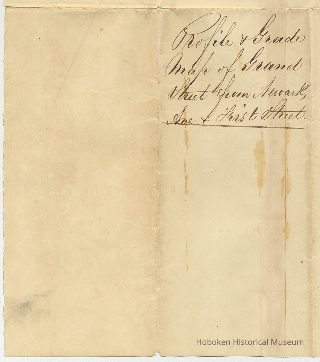 Profile and Grade of Grand Street from Newark Ave. to First Street, City of Hoboken, October 1864. C.P. Colonis (?), City Surveyor. Map sketch, black and red Ink on paper, 14" x 22" folded.