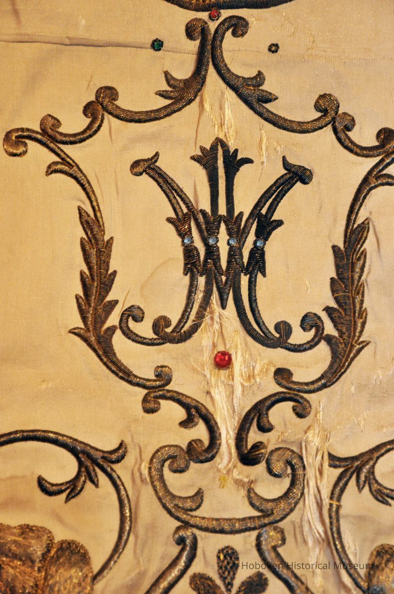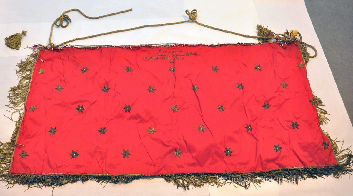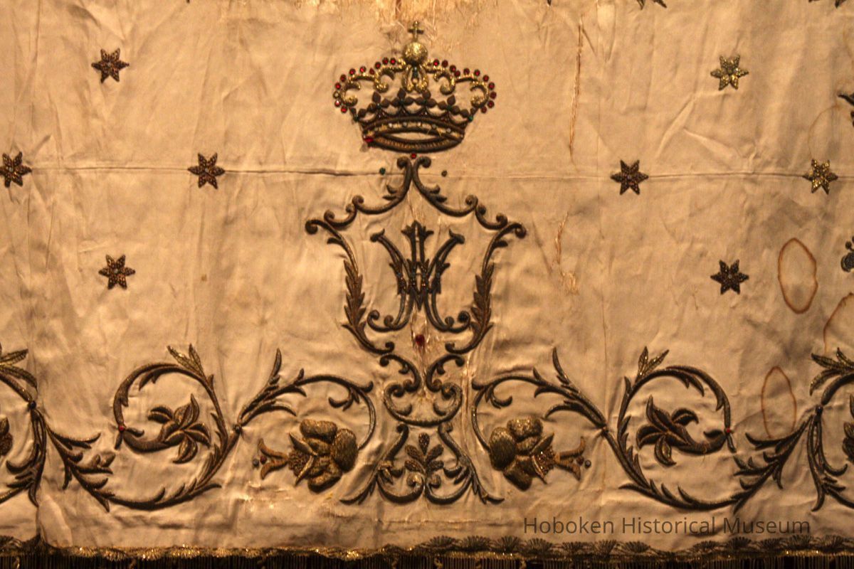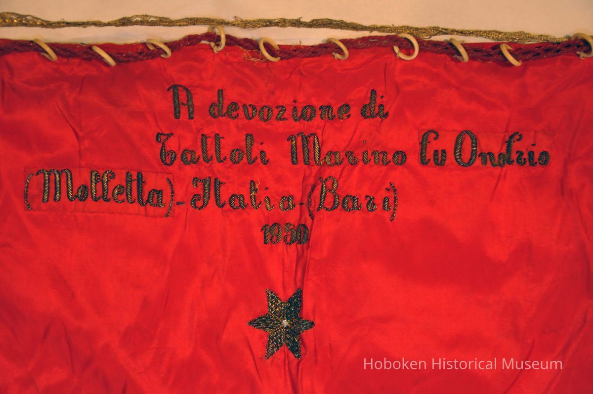 Banner for Madonna procession of the Society of La Madonna Dei Martiri, Hoboken, N.J., 1950 used to 1970s.