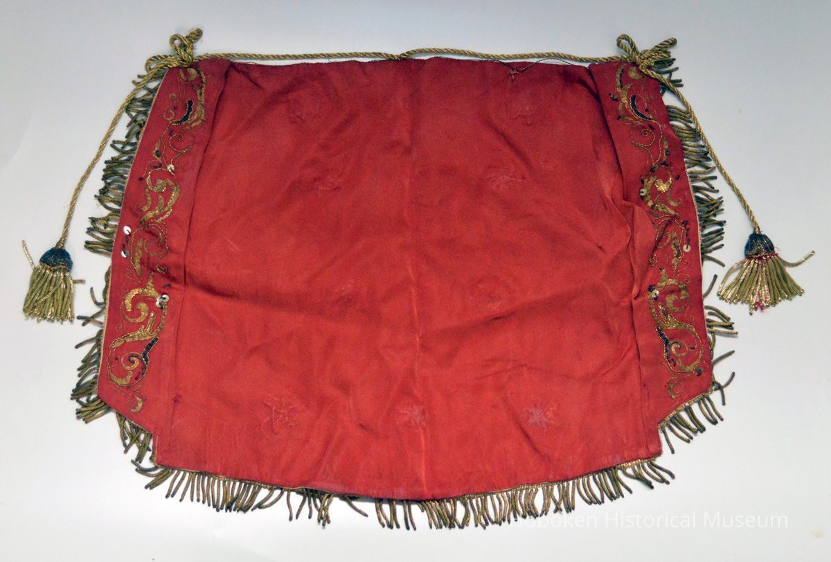 Cape for Christ child on Madonna statue in procession of the Society of La Madonna Dei Martiri, Hoboken, N.J., used circa late 1940s to 1970s.