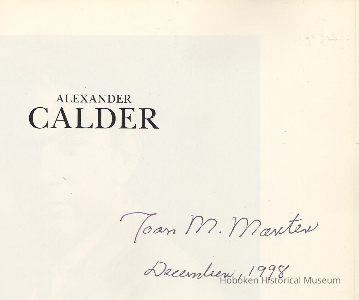 Dr. Marter was the featured speaker at "Celebrating Calder," a one day program at S.C. Williams Library, Stevens Institute of Technology, Hoboken, on December 5, 1998. The event was the centenary of Calder who attended Stevens from 1915 until he graduated in 1919. She donated and signed this copy at that time.