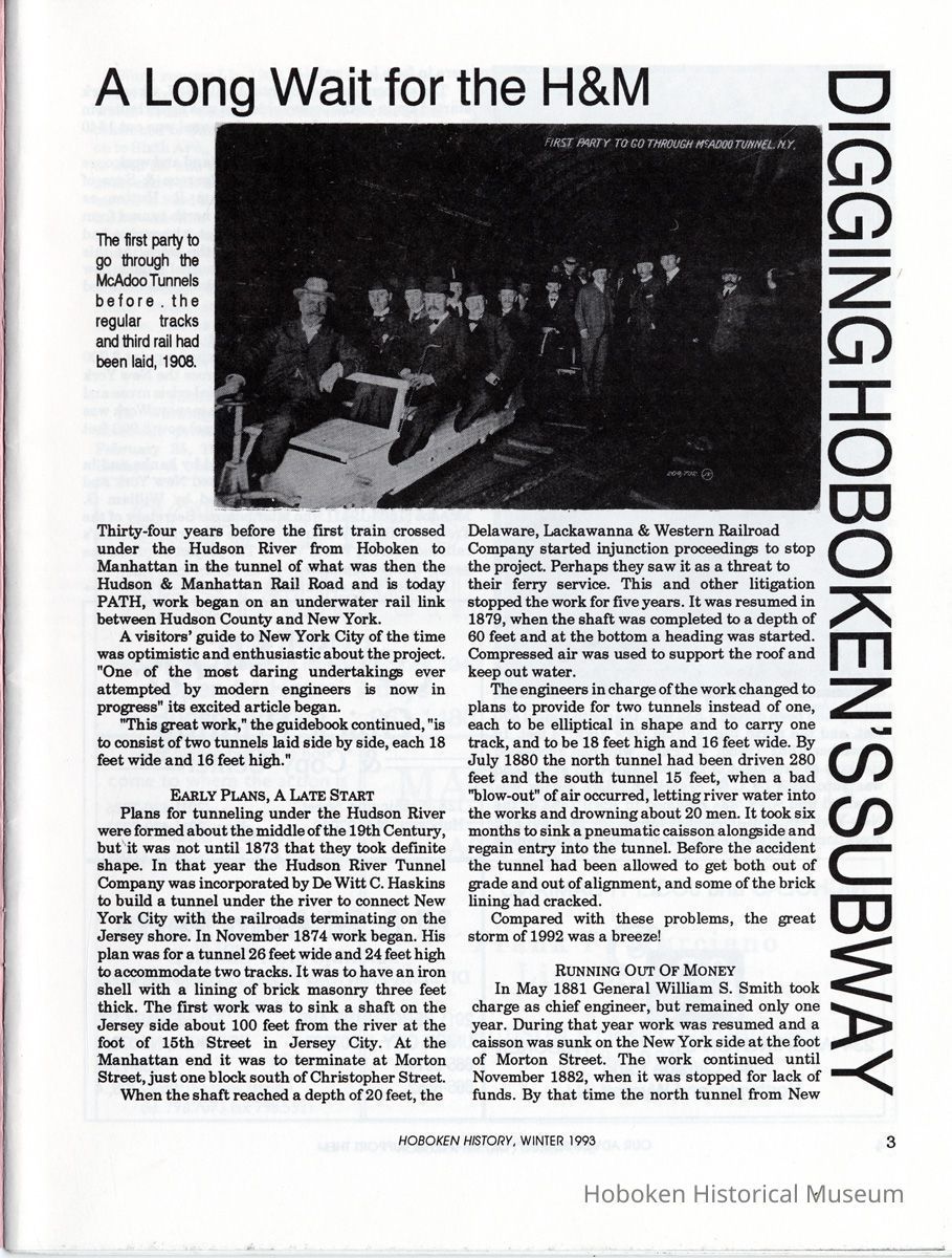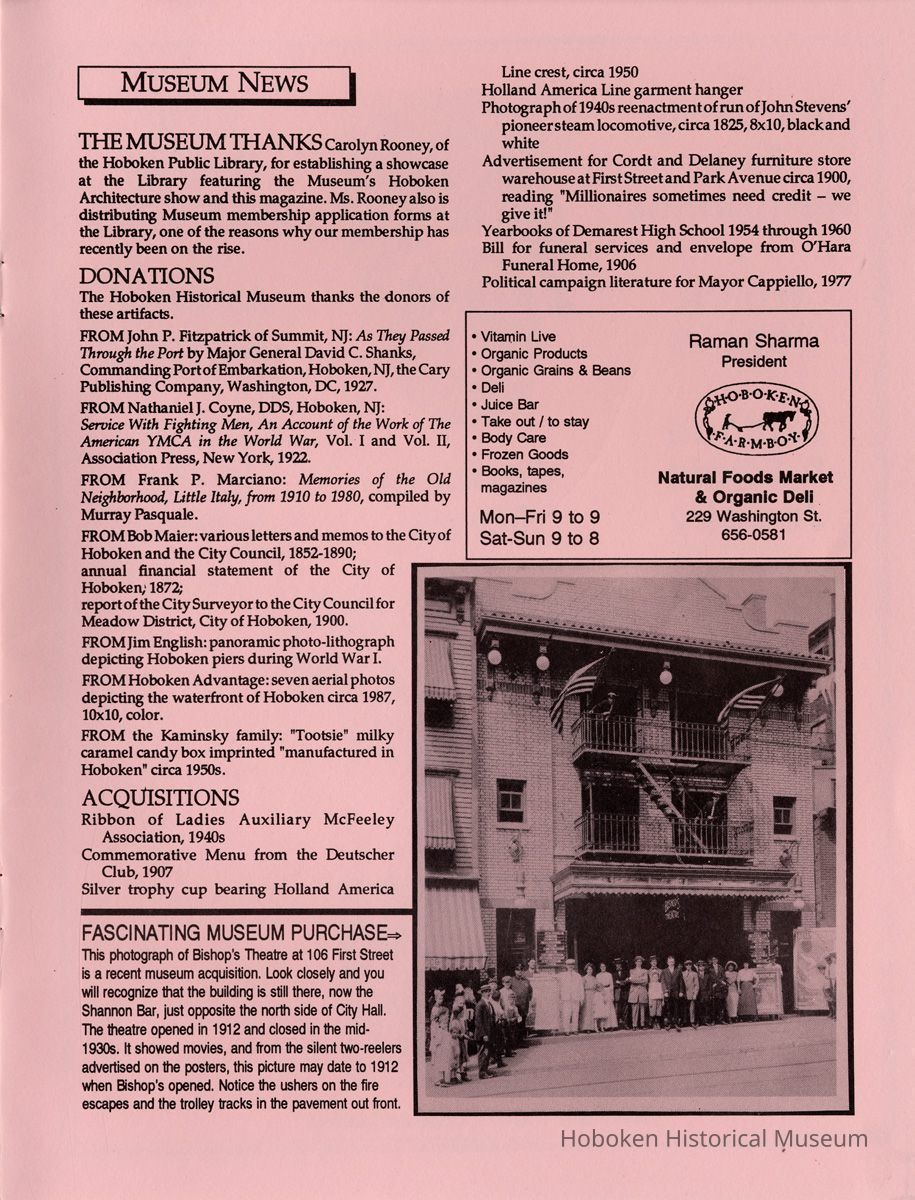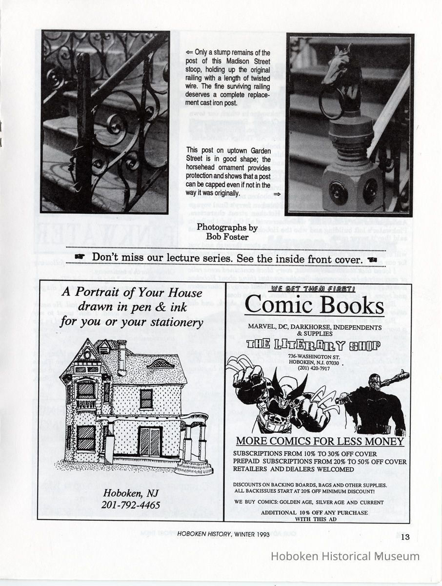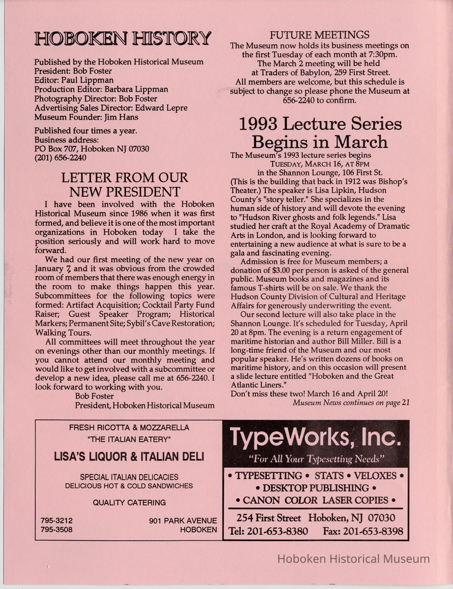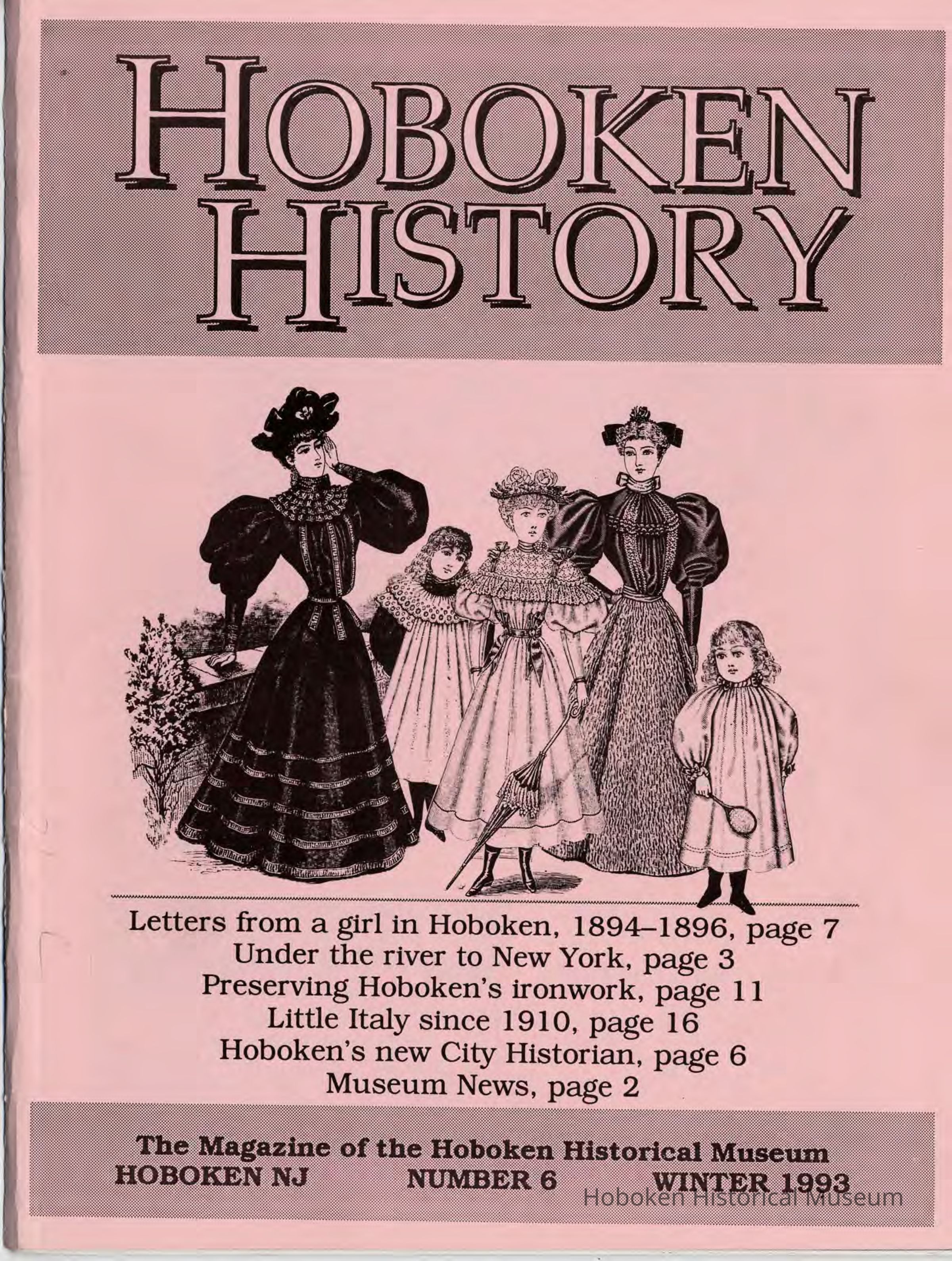 Hoboken History, Number 6, Winter 1993 The Magazine of the Hoboken Historical Museum. Booklet. pp. 24 including covers, illustrated. 8-3/8" wide x 11" high. 3 copies. PDF on file.