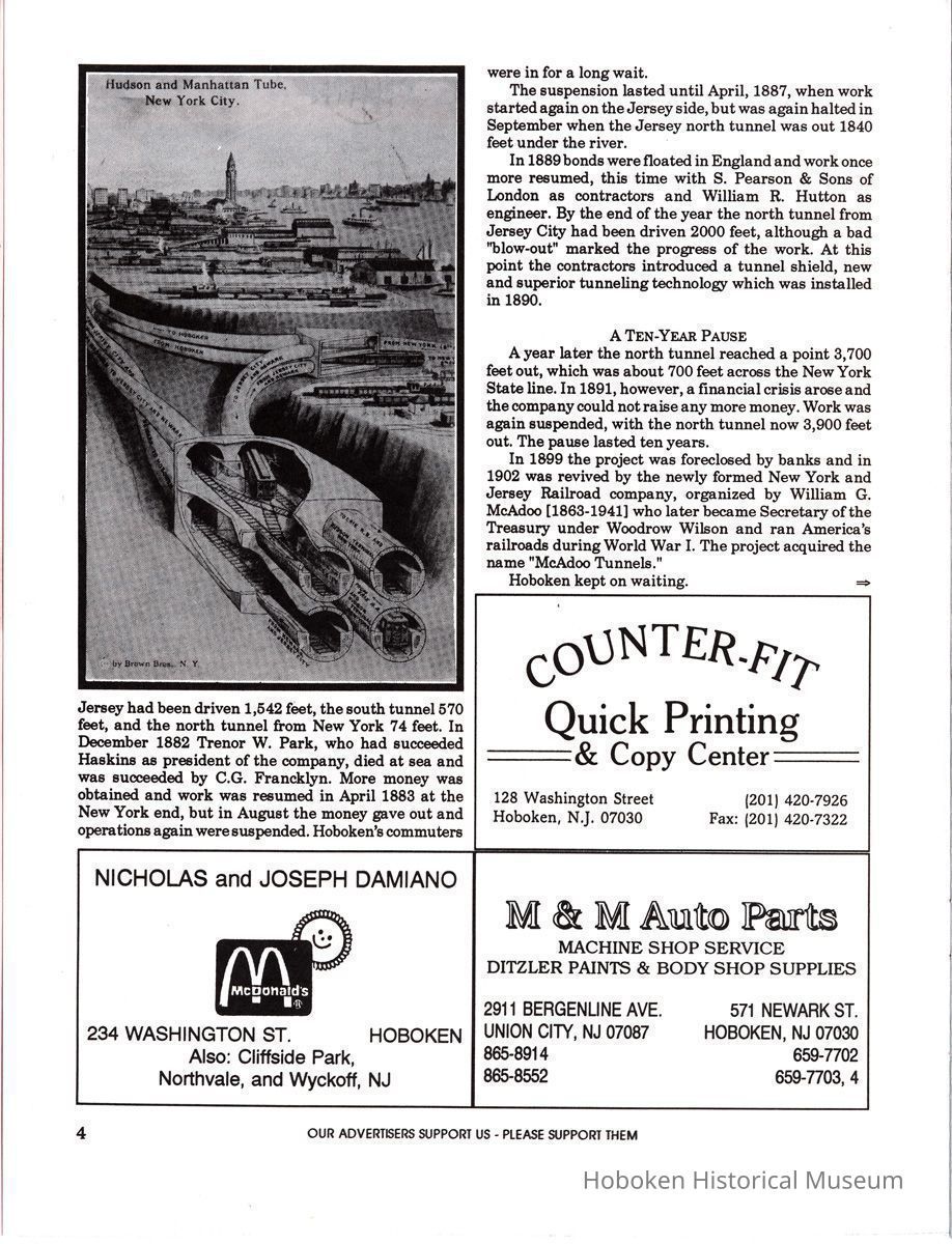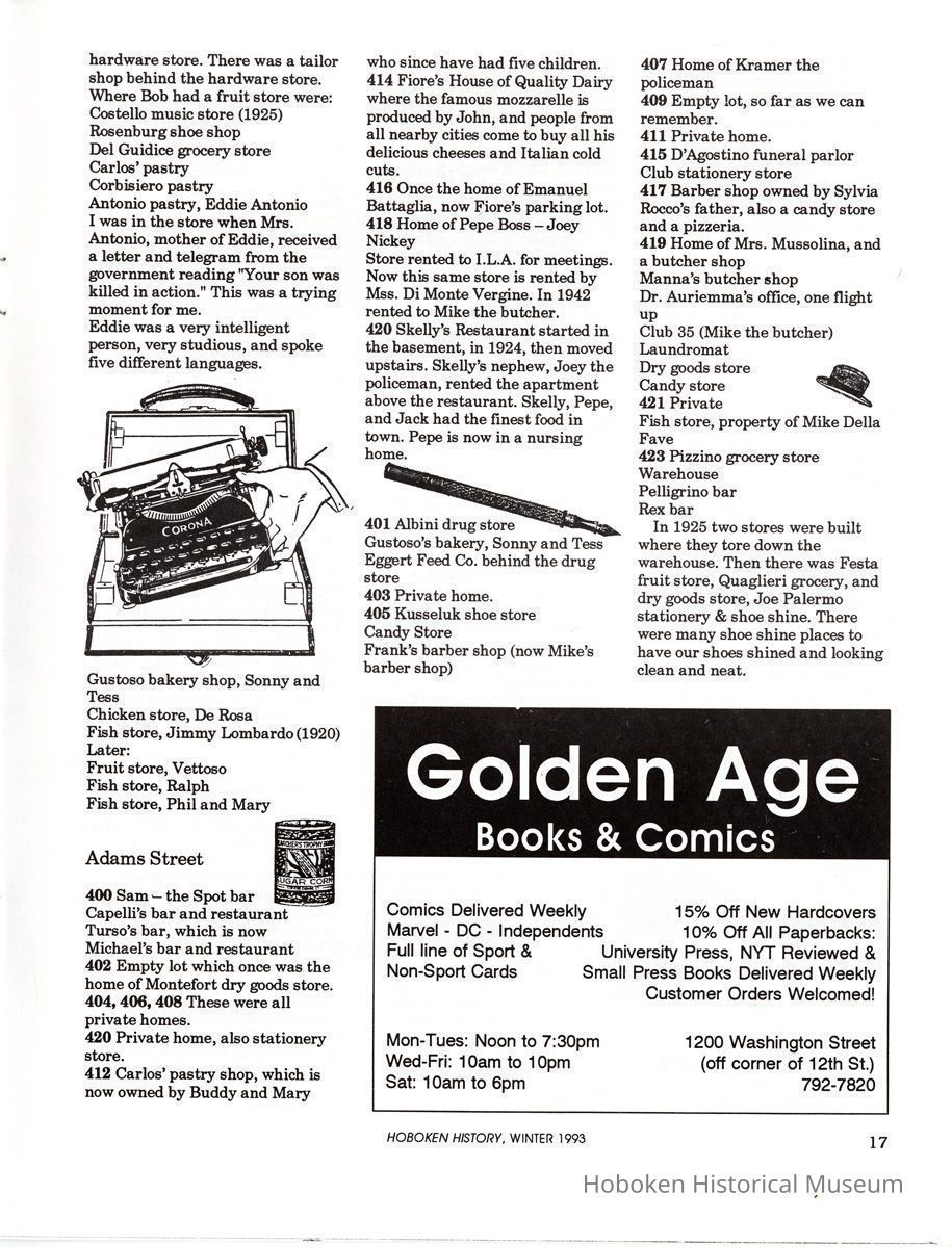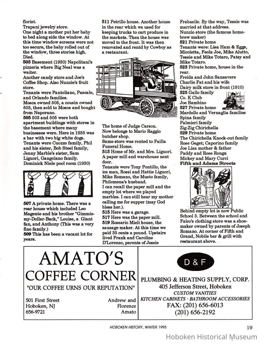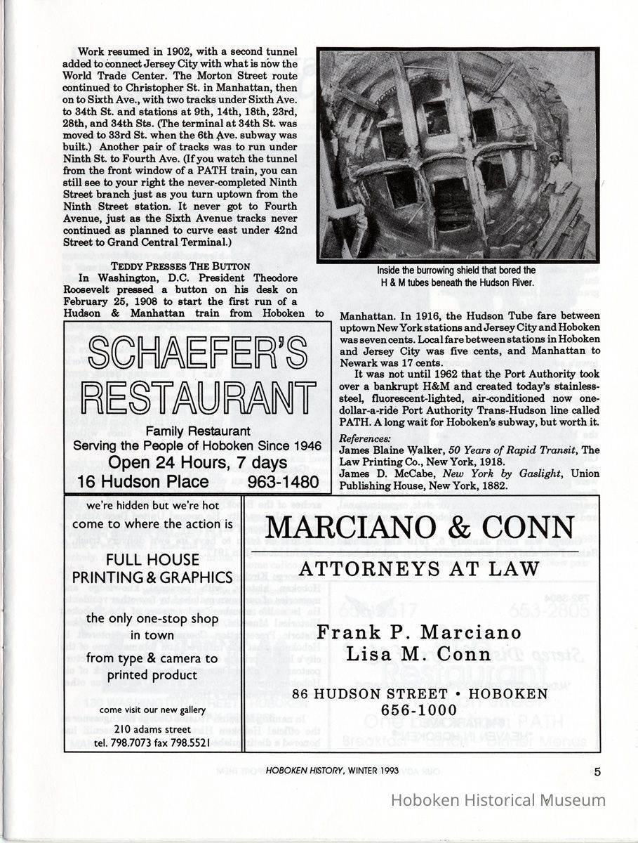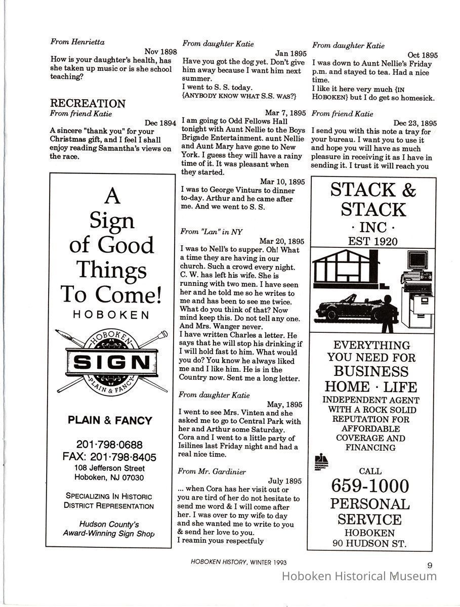 Hoboken History, Number 6, Winter 1993 The Magazine of the Hoboken Historical Museum. Booklet. pp. 24 including covers, illustrated. 8-3/8" wide x 11" high. 3 copies. PDF on file.