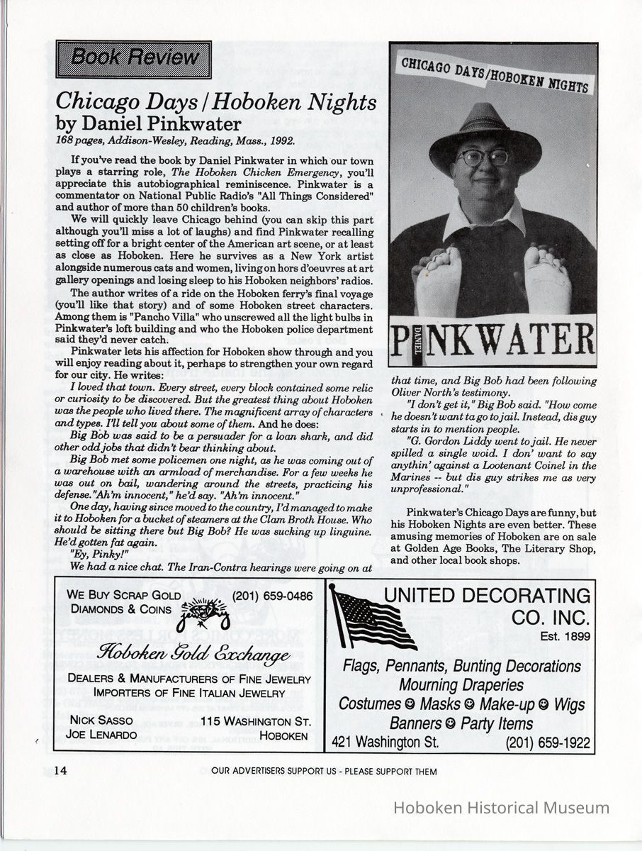 Book Review: Chicago Days/Hoboken Nights. By Daniel Pinkwater. 1 page