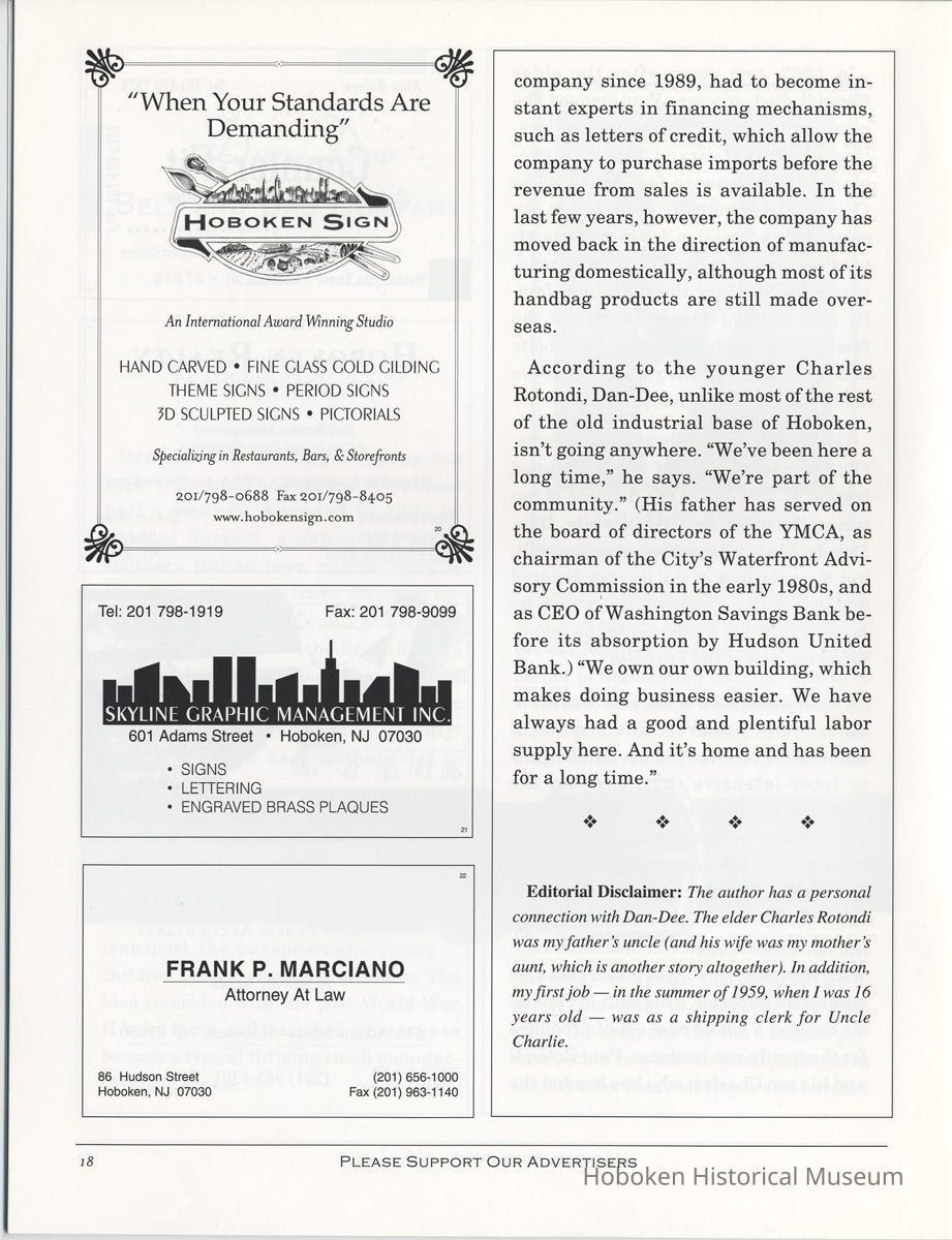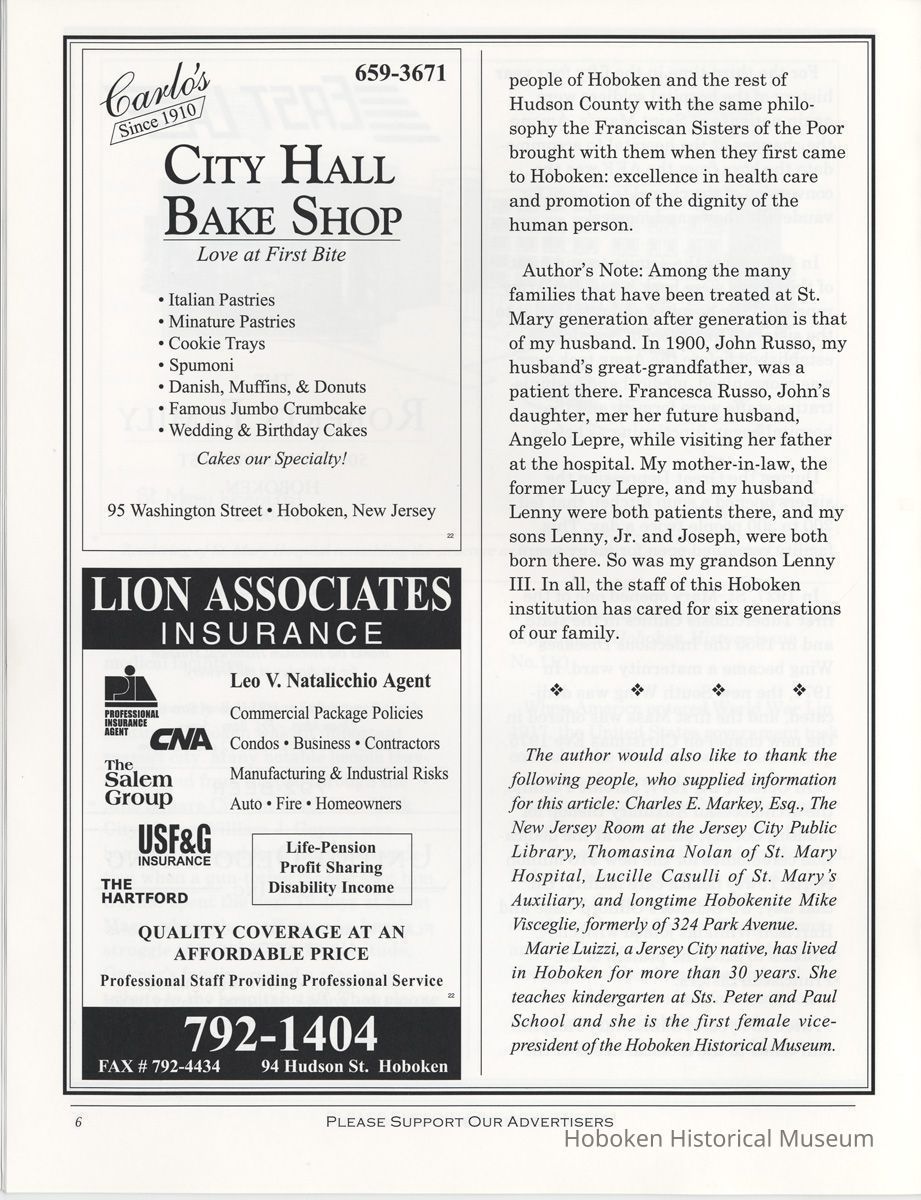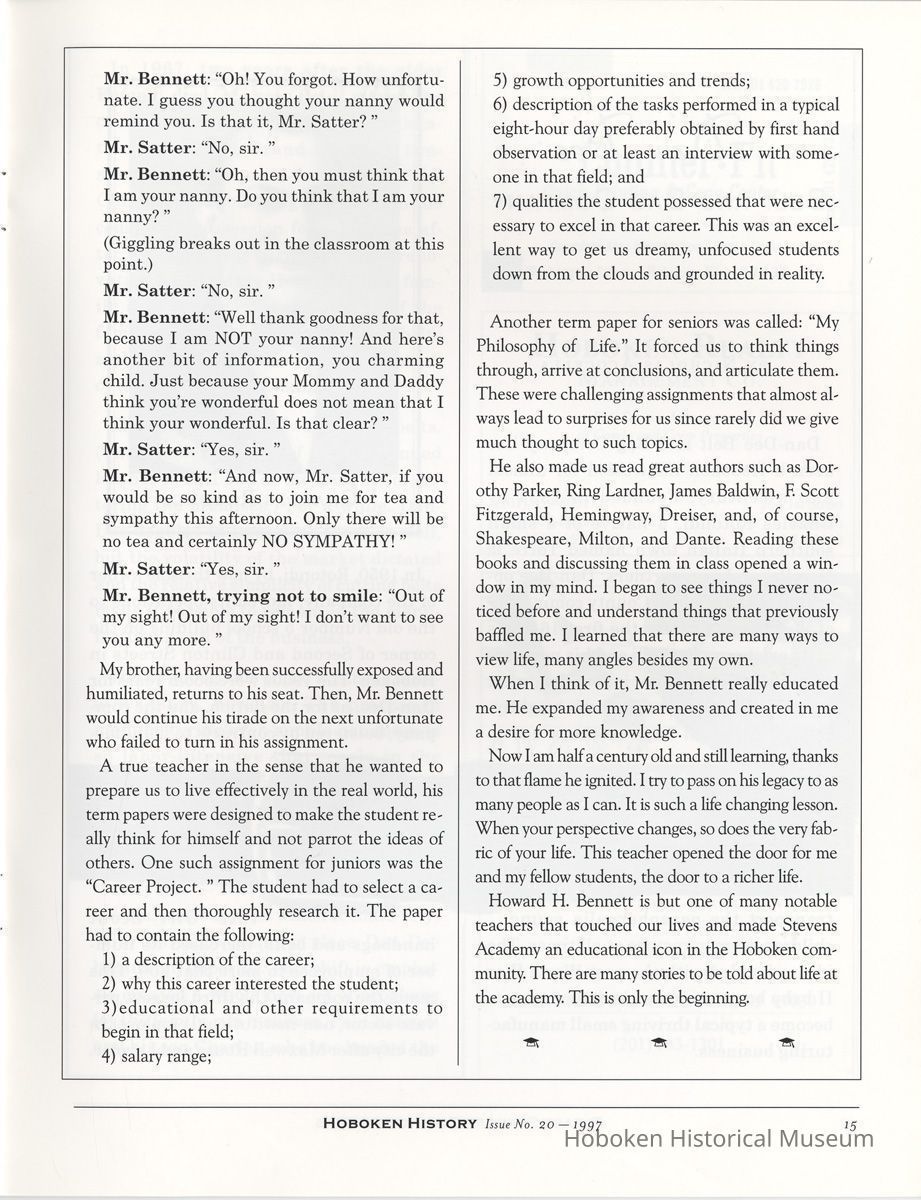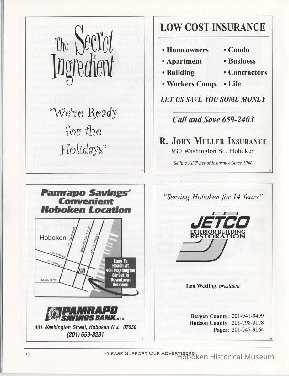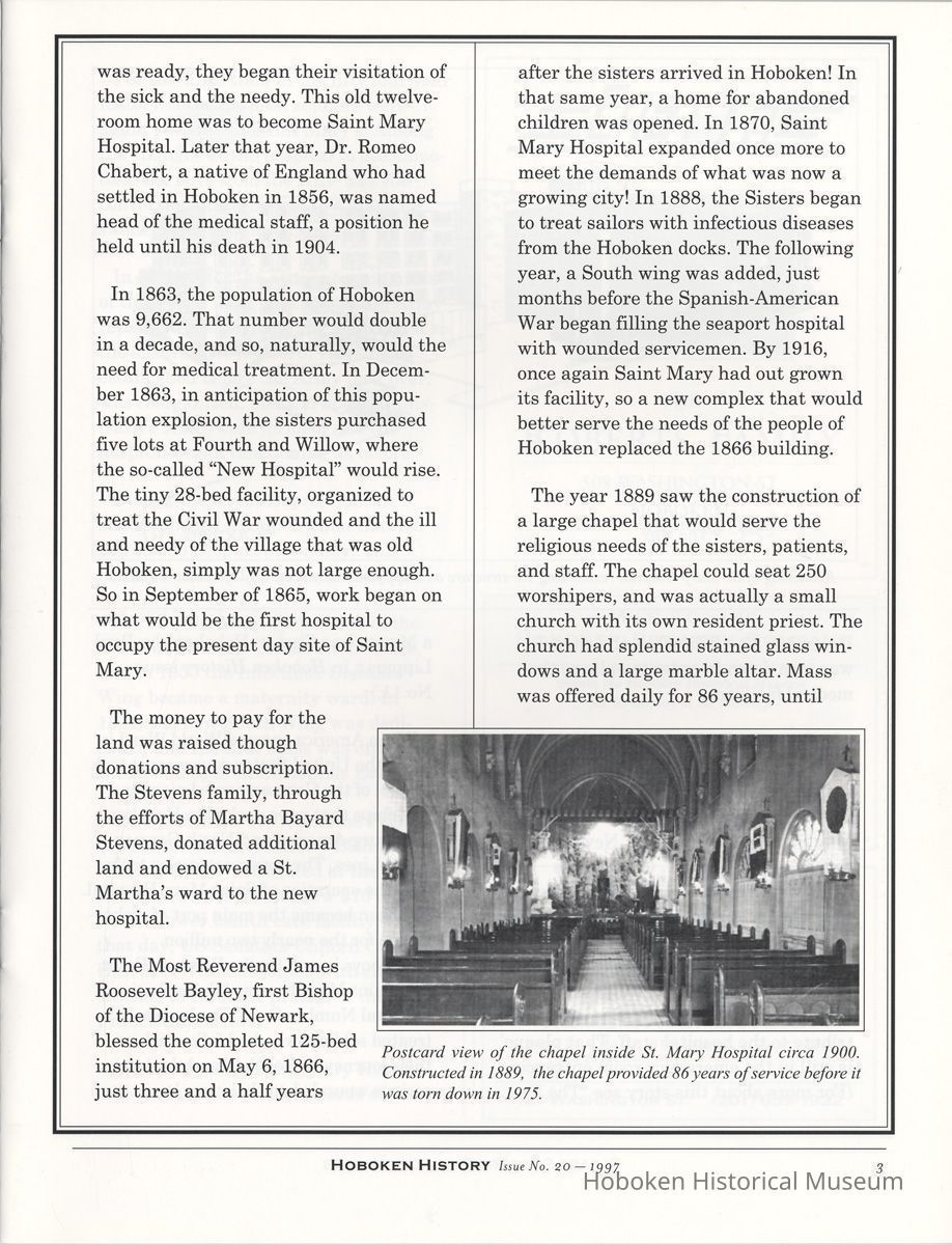 Hoboken History, Number 20, 1997. The Magazine of the Hoboken Historical Museum. Booklet. pp. 20 plus covers, illustrated. 8-3/8" wide x 11" high. 5 copies. PDF on file.