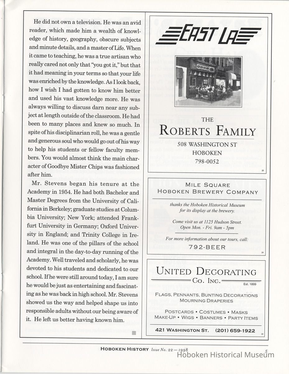 Hoboken History, No. 22, 1998.