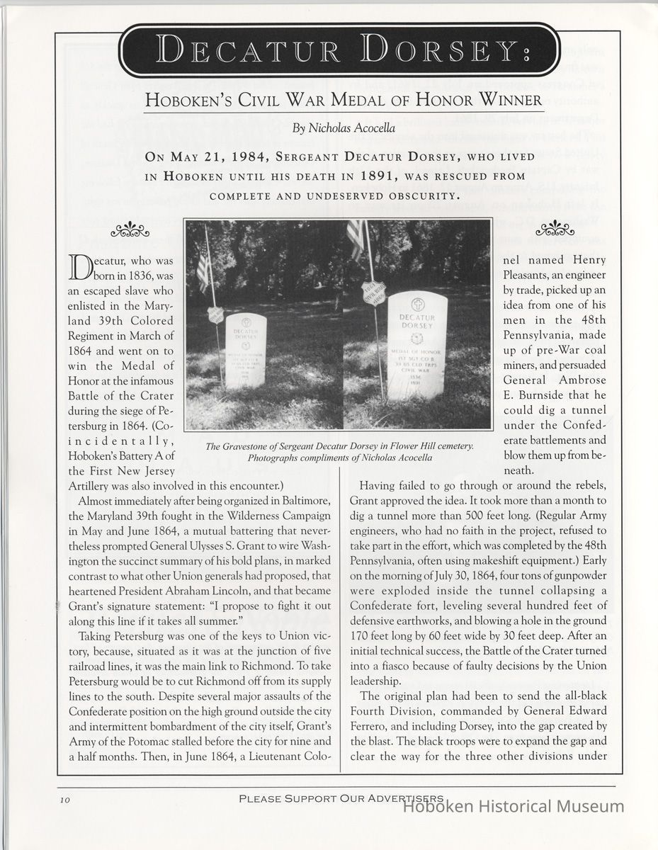 Decatur Dorsey: Hoboken's winner of the Medal of Honor in the Civil War.