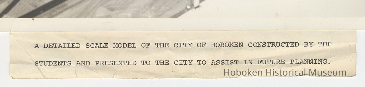 Text of caption: A detailed scale model of the City of Hoboken constructed by the students and presented to the city to assist in future planning.
