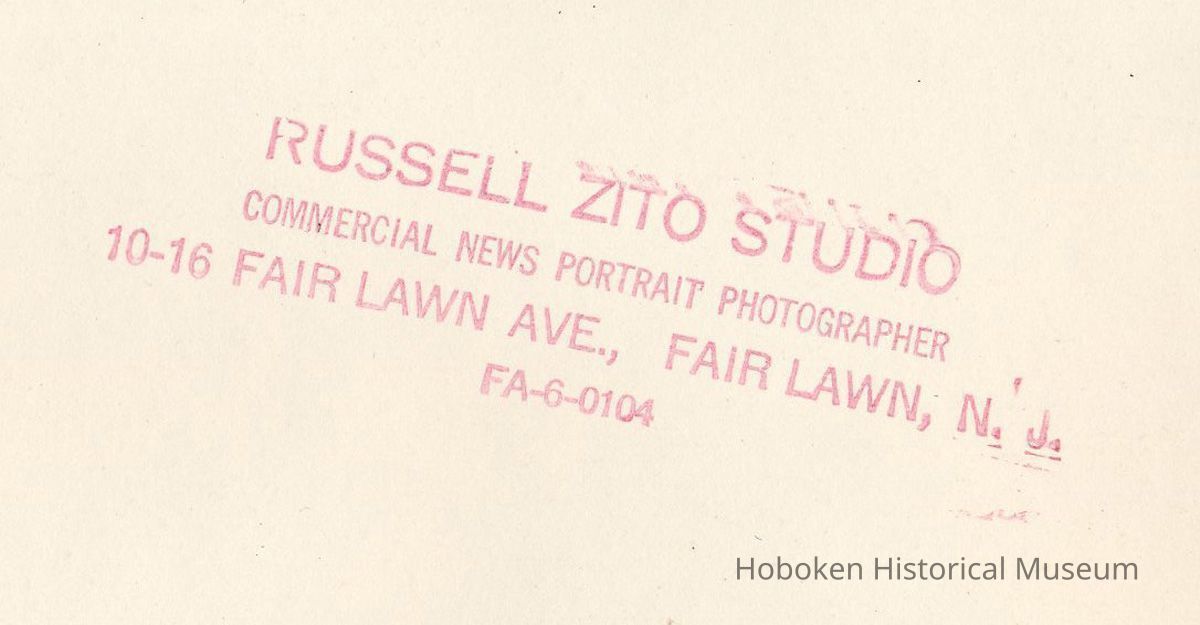 Black-and-white photo of General Foods float in Centennial parade, Hoboken, [March 28, 1955.] 8" x 10" wide print. Photograph by Russell Zito Studio, Fair Lawn, N.J. as stamped on reverse.