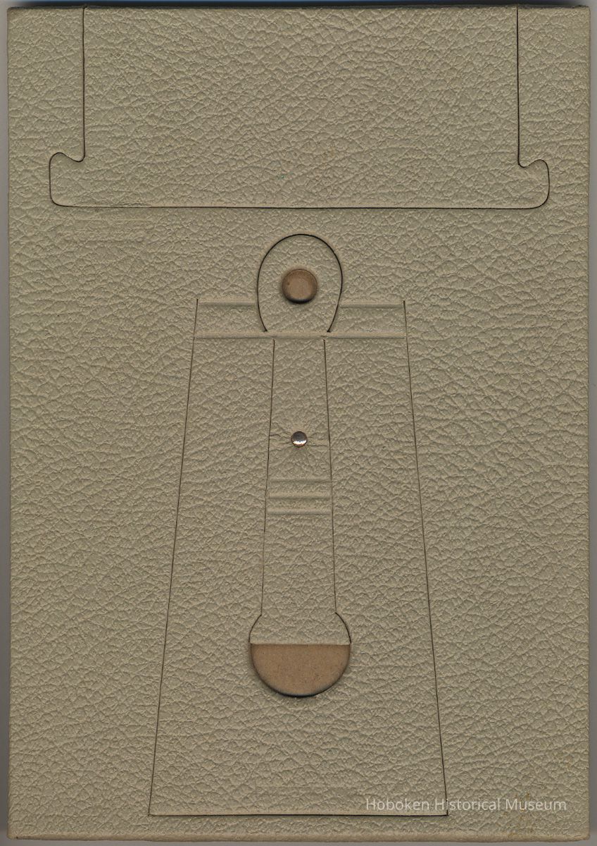 Sepia tone photo of Mildred Avantario posed for graduation photo, Hoboken, no date, circa June 1940. 4" x 6" print in photographer's frame, 5-7/8" wide x 8-1/2" high. Photograph taken by The Paap Studio, P. Morrone, Proprietor, 301 First St., Hoboken (as stamped on frame.) Reverse of photo is blank. Frame, embossed paper and cardboard, two tones, has a diploma motif. Cover glass cracked as received and discarded.