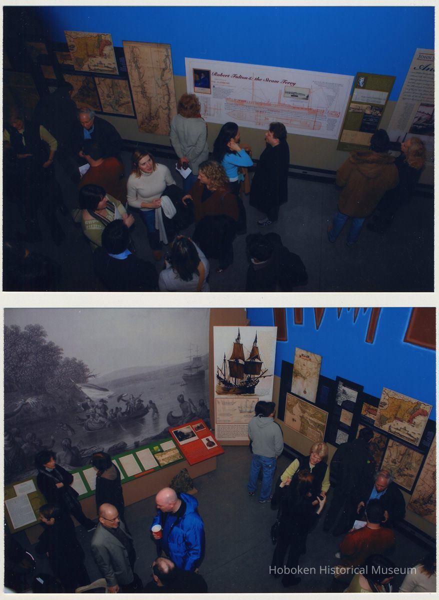 Color photographs, eight, of the exhibition, Up & Down the River, Hoboken Historical Museum, January 31, 2009. 4" x 6" digital prints. Photographs by Joseph Travelli. People are not identified.