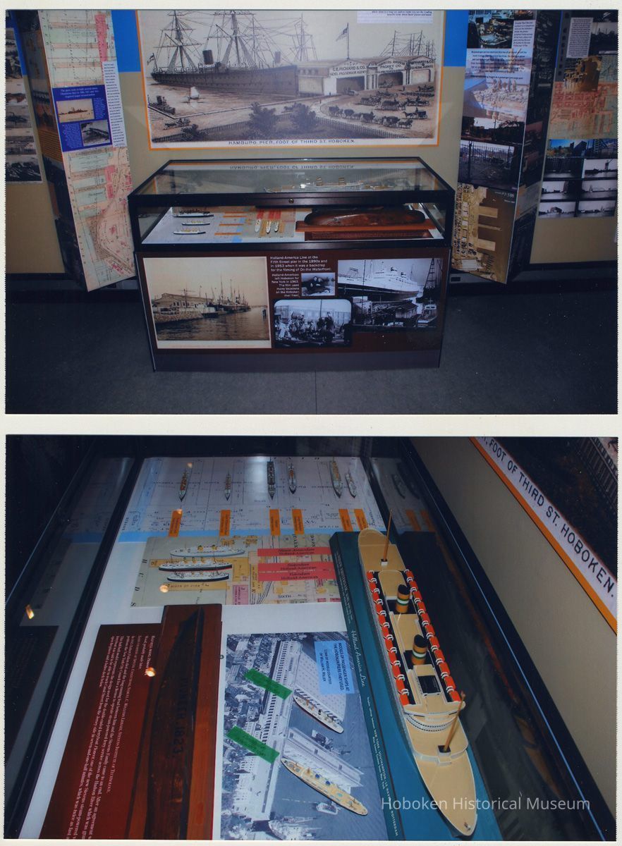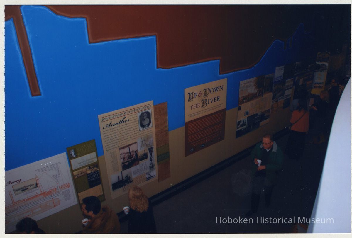 Color photographs, eight, of the exhibition, Up & Down the River, Hoboken Historical Museum, January 31, 2009. 4" x 6" digital prints. Photographs by Joseph Travelli. People are not identified.