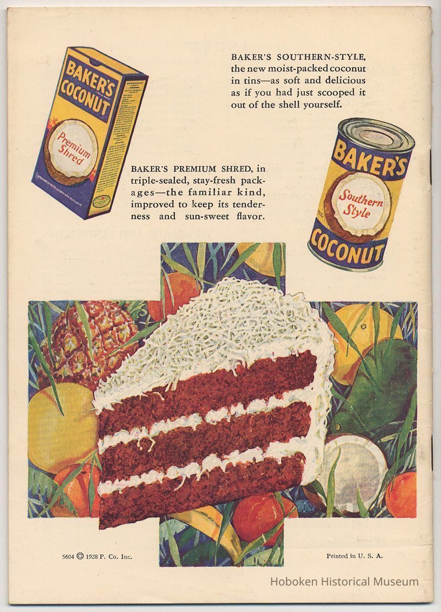 Booklet: Coconut, sun-sweetness from the tropics. Franklin Baker Company, Hoboken, New Jersey. 1928.