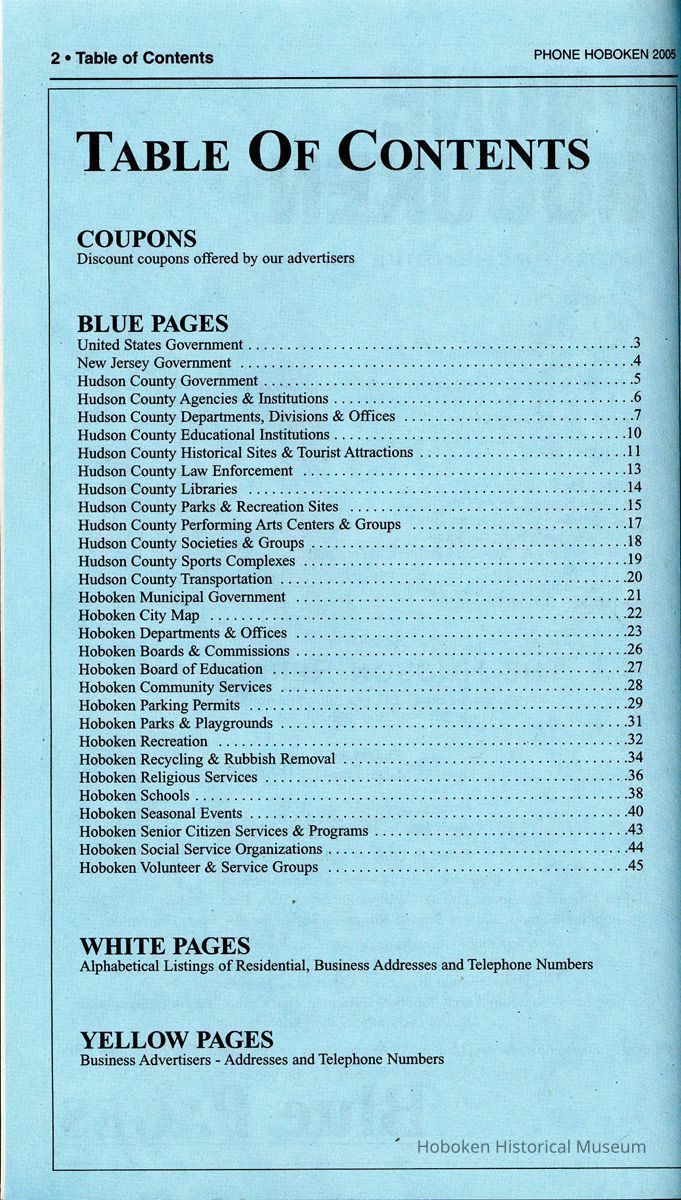 Phone Hoboken. A Comprehensive Community Guide 2005-2006. A publication of the Hoboken Reporter.