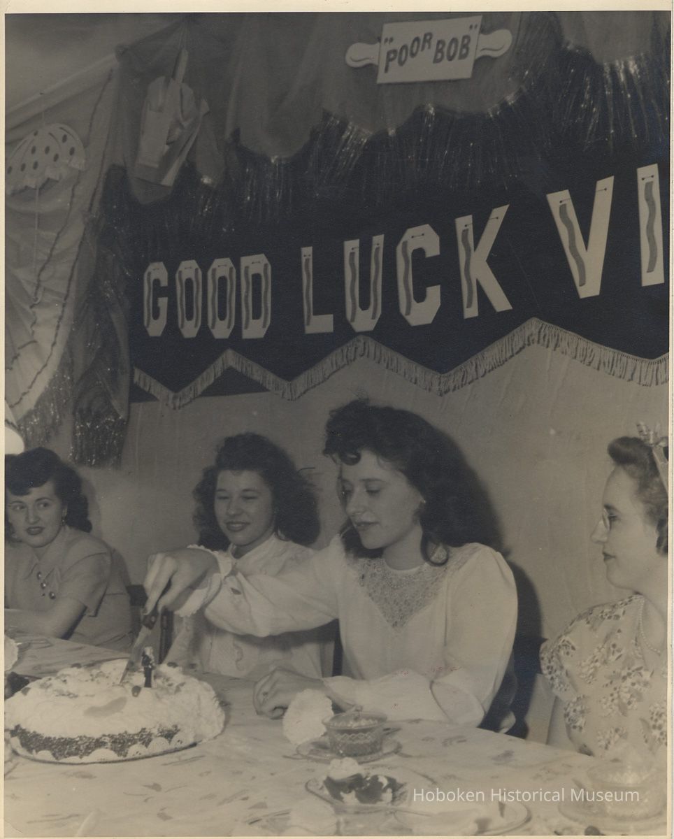 B+W photos, 3, of bridal shower with decor by United Decorating Co., Hoboken, n.p. (probably Hoboken), n.d., ca. 1940s-1950s.