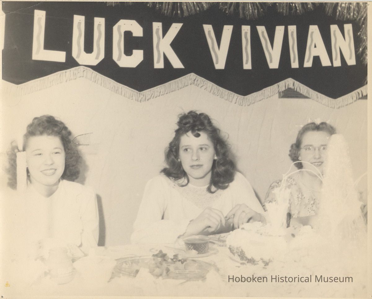 Black-and-white photos, three, of United Decorating Co. decor for Vivian's bridal shower, no place (probably Hoboken), no date, circa late 1940s or early 1950s. 8" x 10" prints. Photographer is not indicated. Reverse of all are blank.