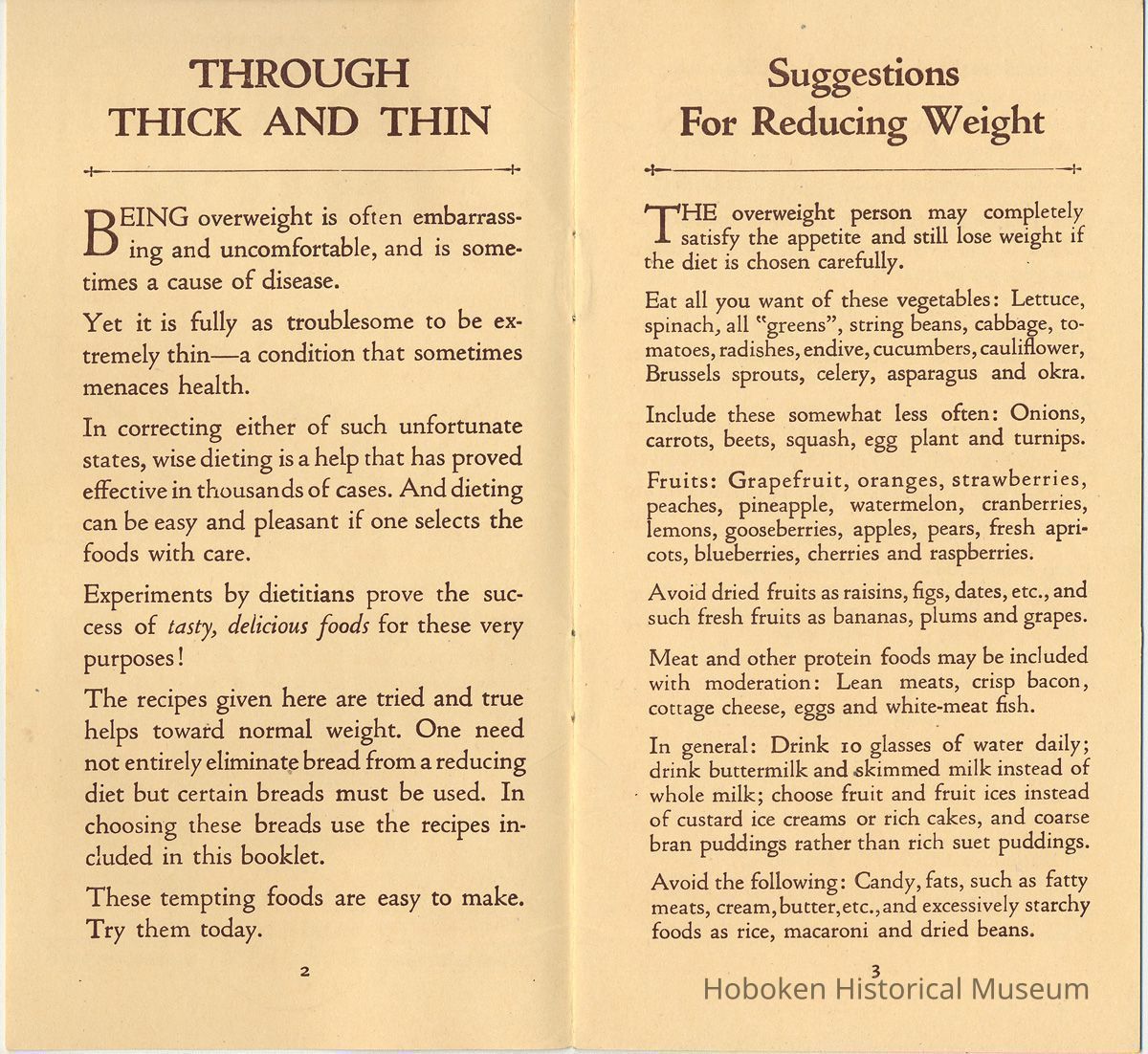 Booklet: Through Thick and Thin. Some Diet Suggestions from R.B. Davis Co., Hoboken, N.J. N.d, ca. 1920-1925.
