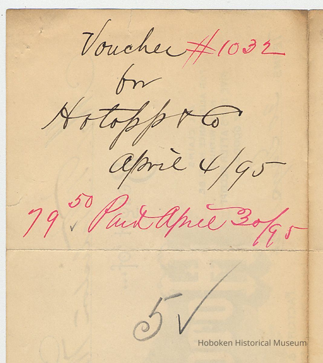 Bill: Hotopp & Co., Manufacturers of Varnishes, Hoboken, N.J., April 4, 1895, to Mr. T. Tiliston Wells. Printed billhead 7" high x 8-3/8" wide.