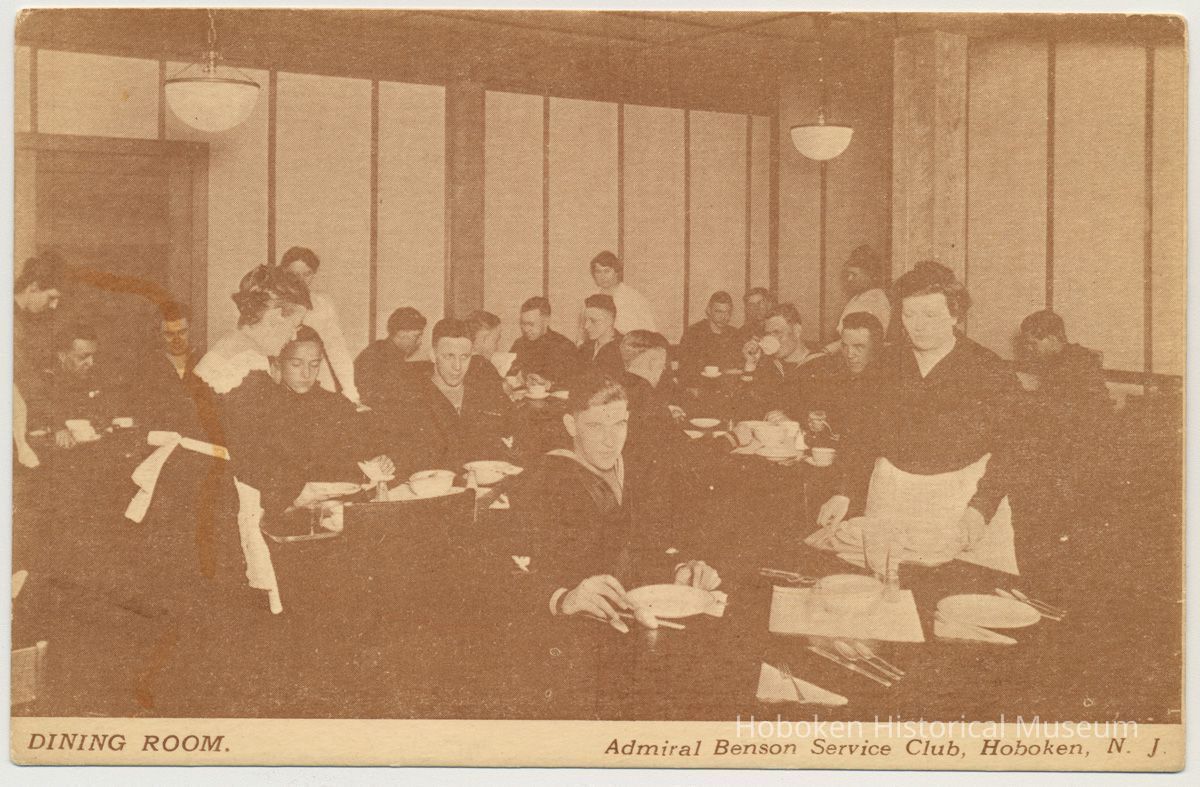 Postcard: photo view of the Dining Room, Admiral Benson Service Club, Hoboken, N.J., no date, ca. 1918-1919.